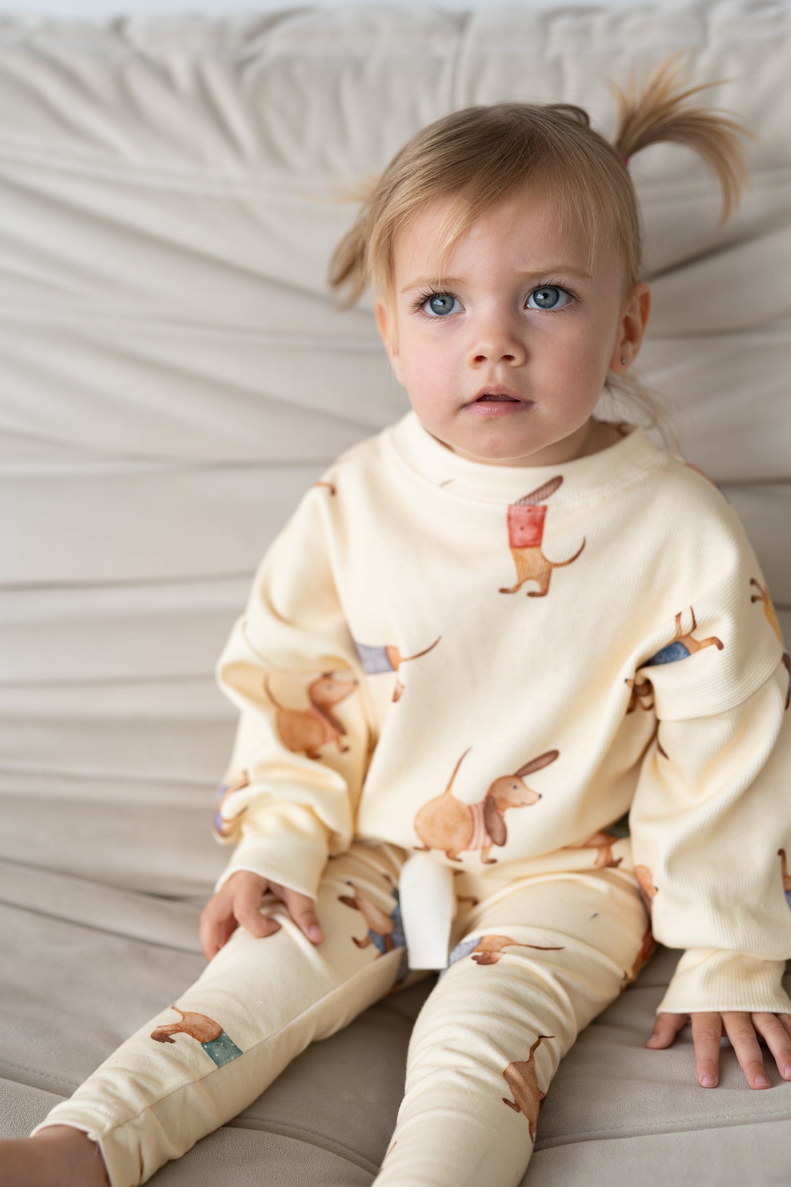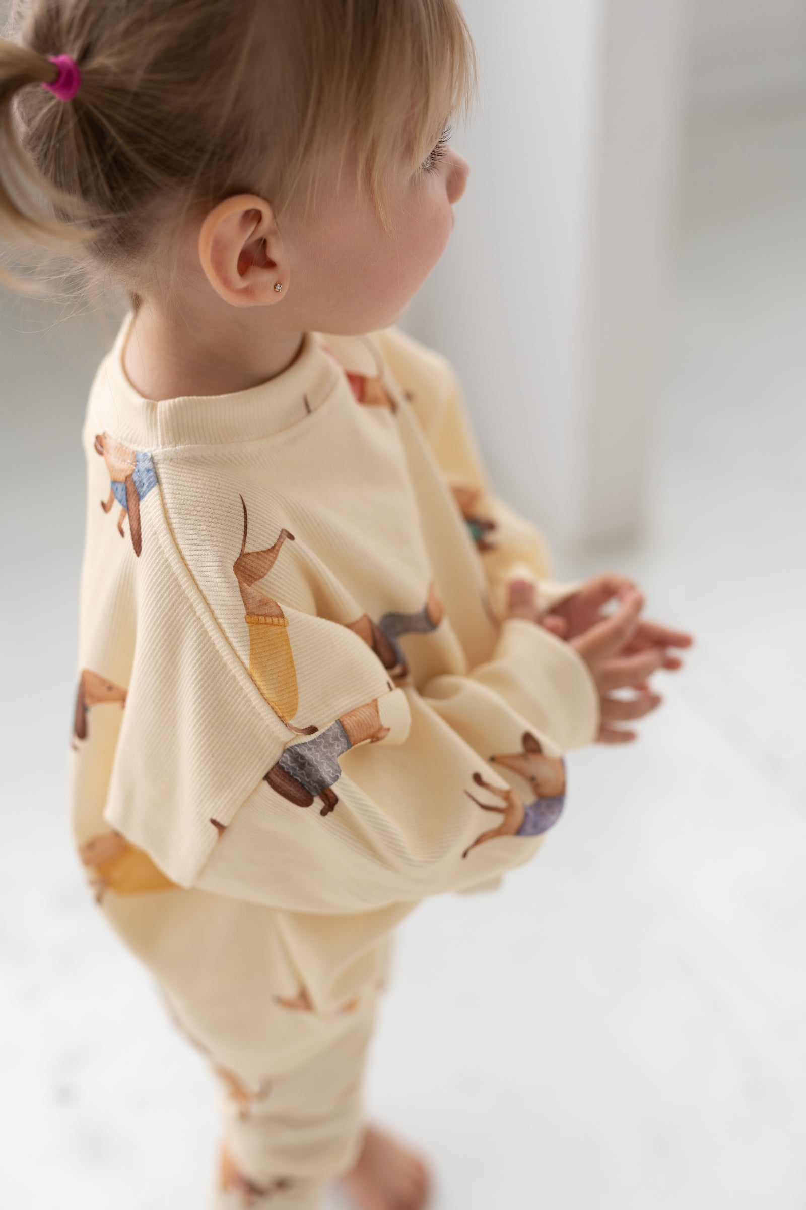 Kolorowy nadruk o radosnym motywie nadaje bluzie niepowtarzalny wygląd, który przypadnie do gustu zarówno dzieciom, jak i rodzicom. Idealnie sprawdzi się w codziennych stylizacjach.