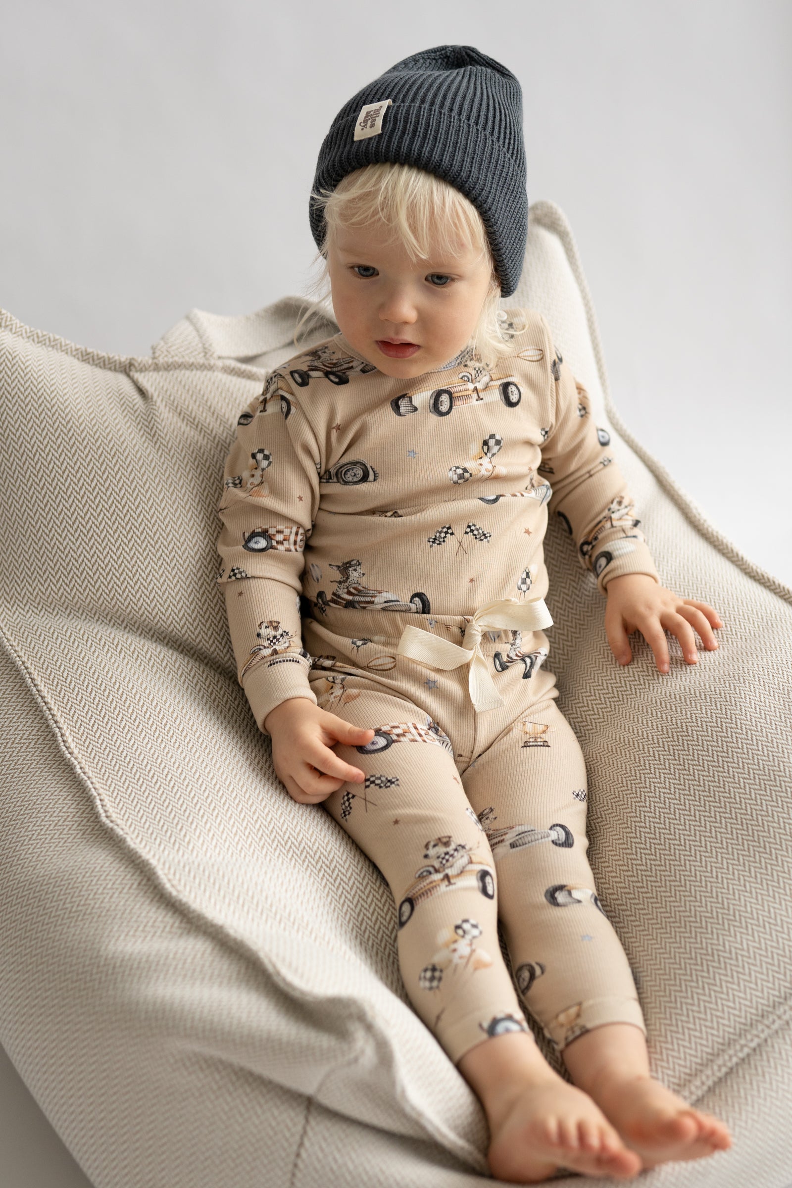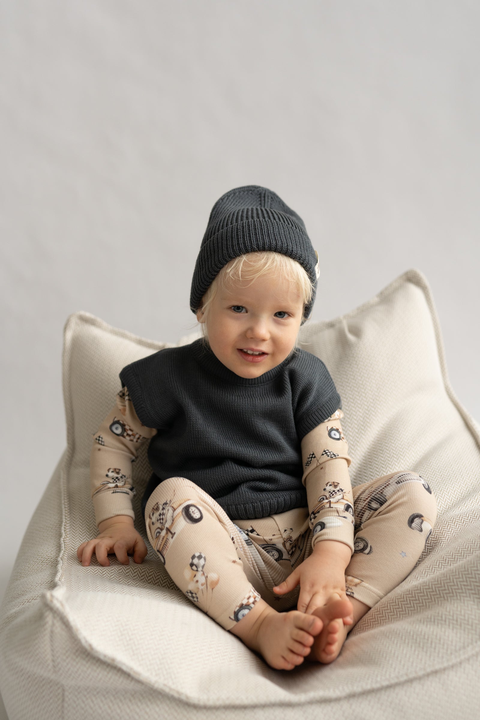 Hochkrempelbare Ärmel sorgen für eine optimale Passform, während Ihr Kind wächst, und Druckknöpfe im Schritt ermöglichen eine individuelle Längenanpassung. So wächst das Kleidungsstück mit Ihrem Kind mit und bietet Komfort und Funktionalität, die länger halten als bei herkömmlichen Bodys. Ein praktischer Verschluss erleichtert das An- und Ausziehen sowie das Windelwechseln.