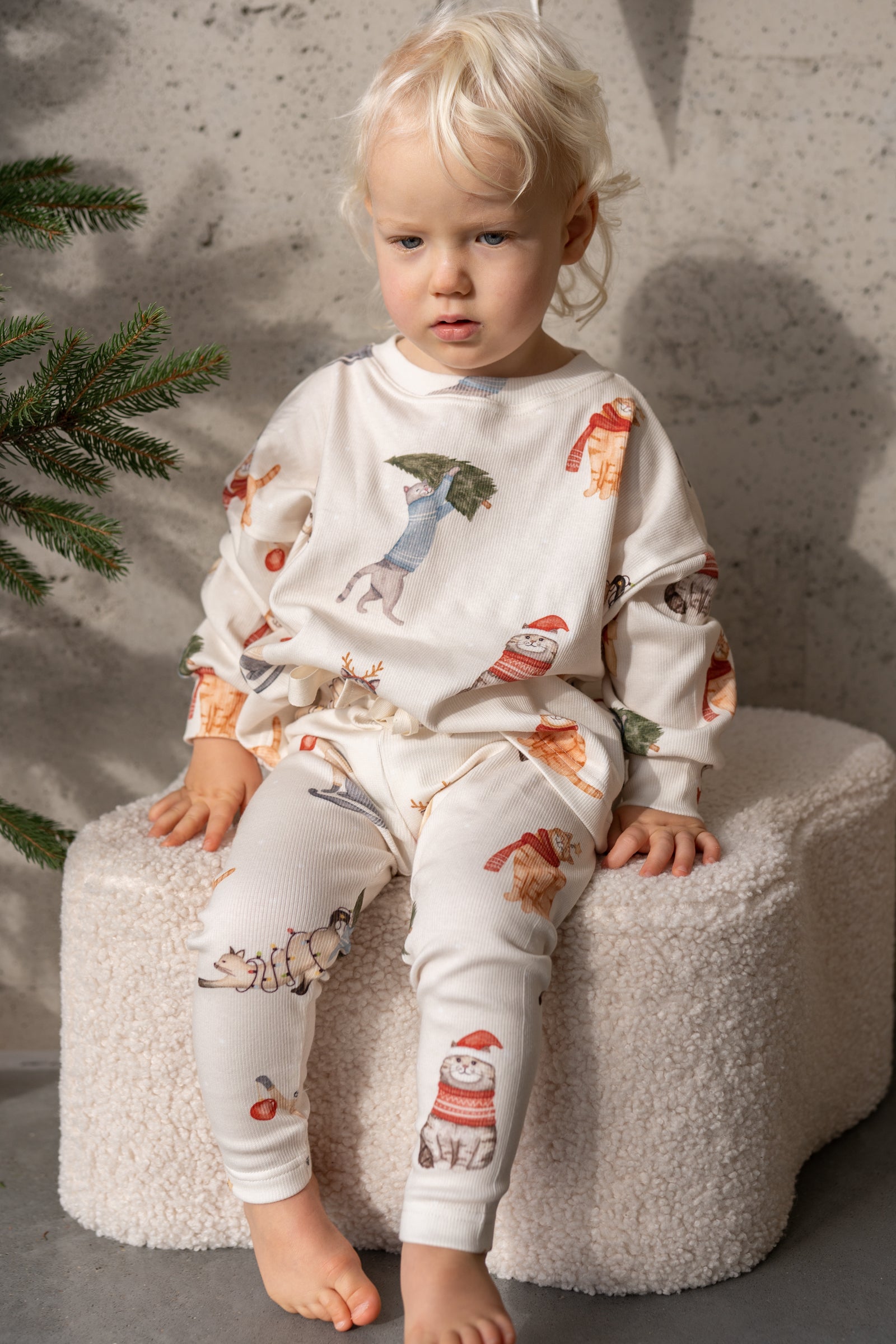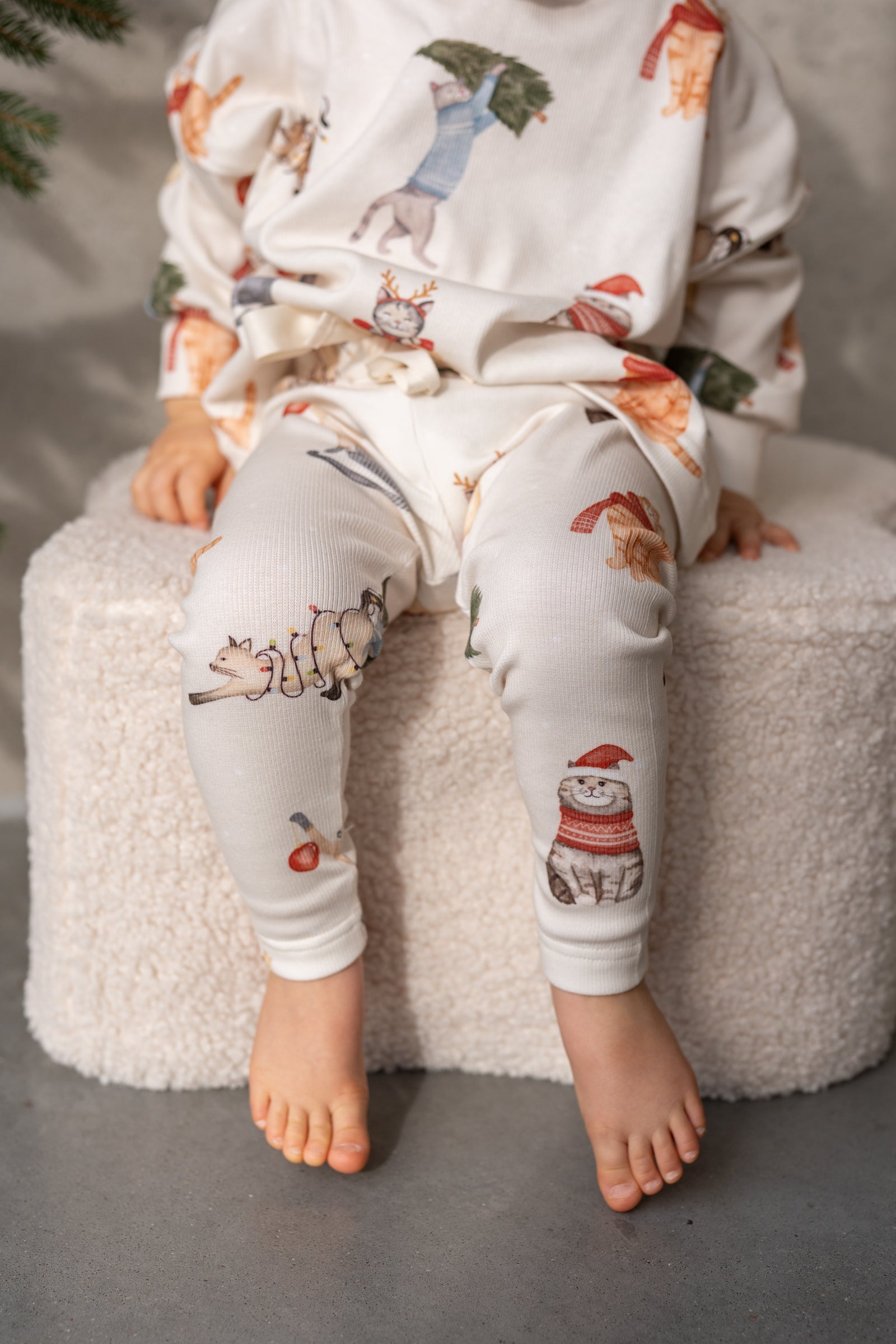 🐻 Legginsy niemowlęce z kotkami – zimowe legginsy dla dziewczynki i chłopca