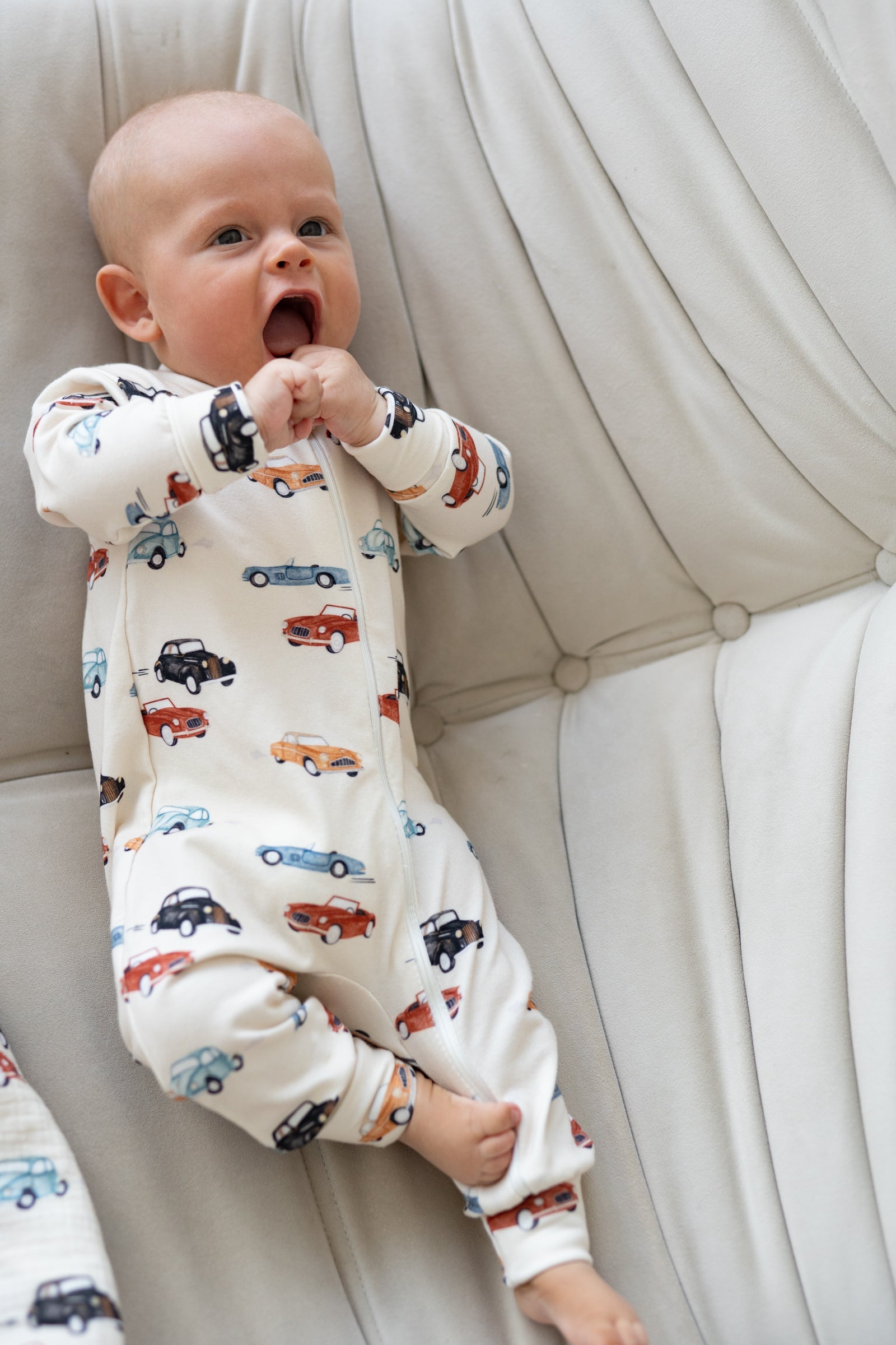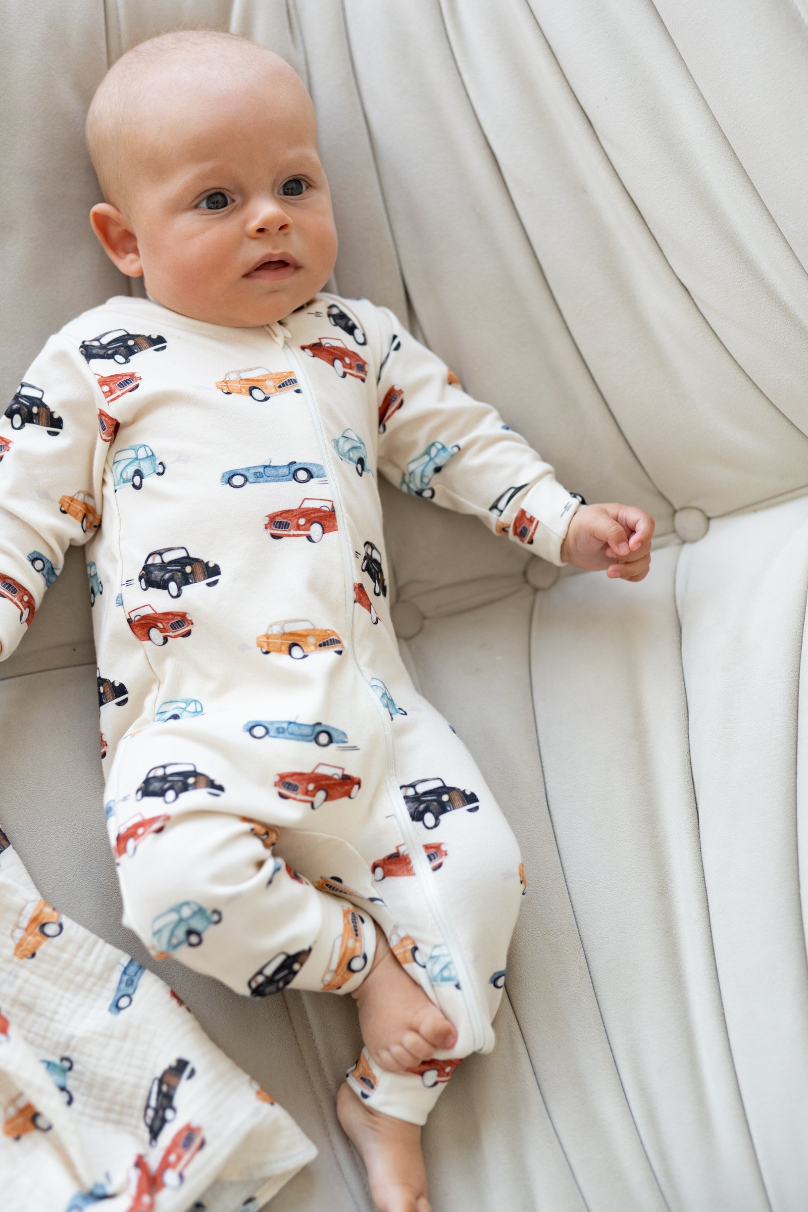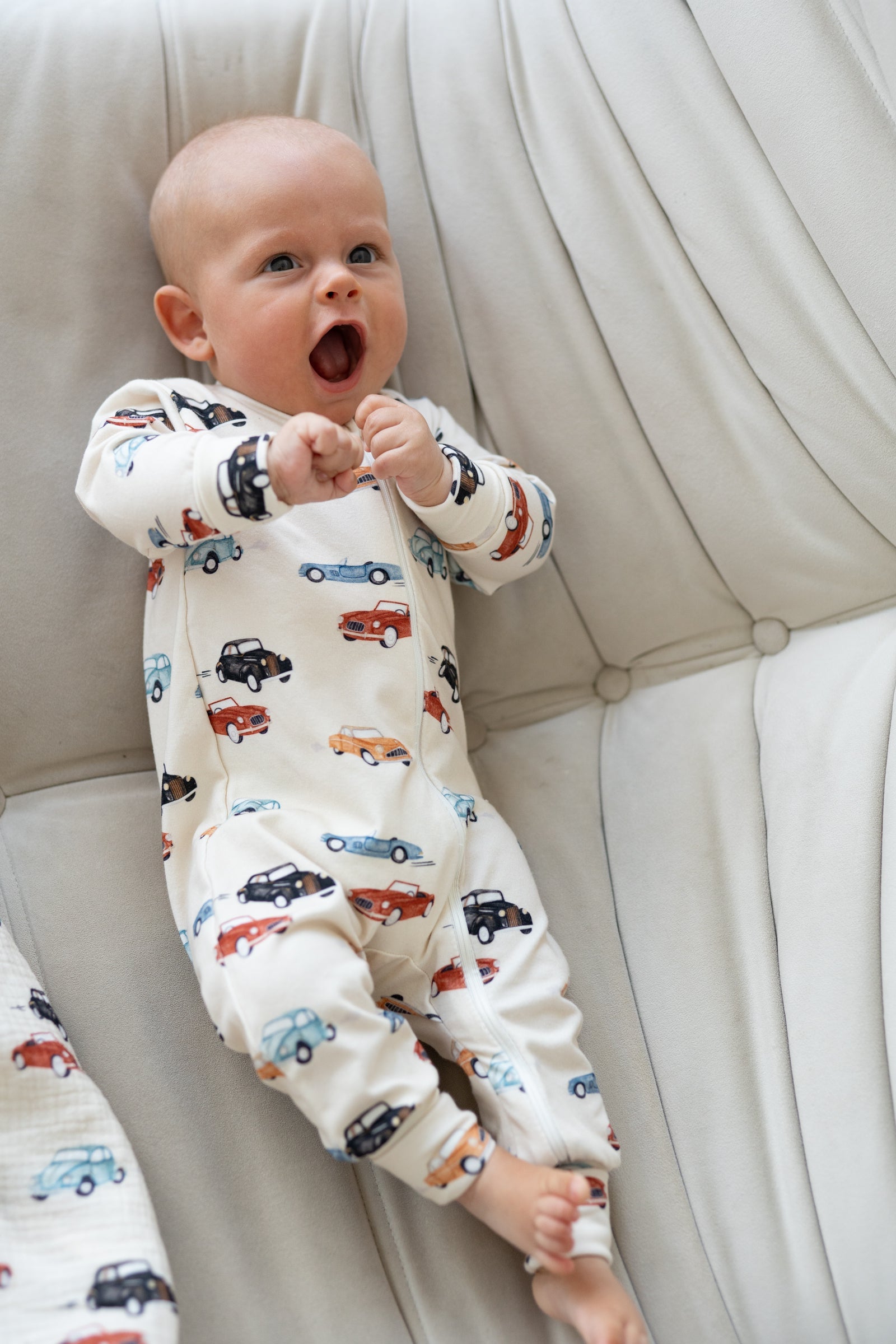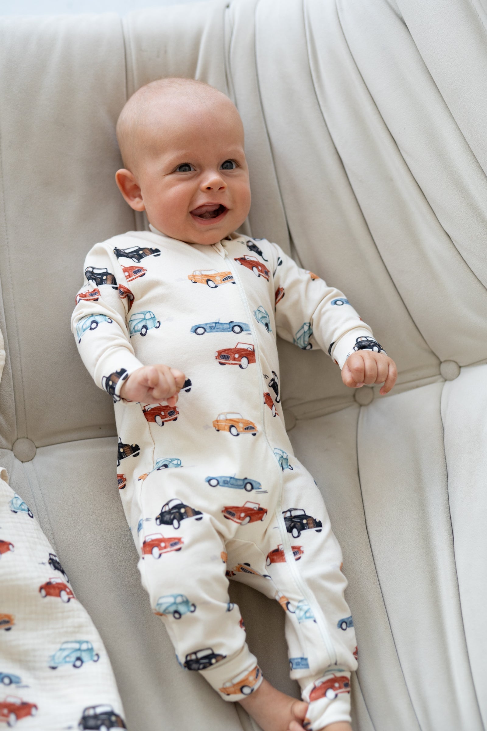 Wyposażony w wygodny zamek błyskawiczny na całej długości, co ułatwia ubieranie i przewijanie. Dodatkowo pajacyk posiada osłonkę przy szyi, która chroni delikatną skórę dziecka przed otarciami.