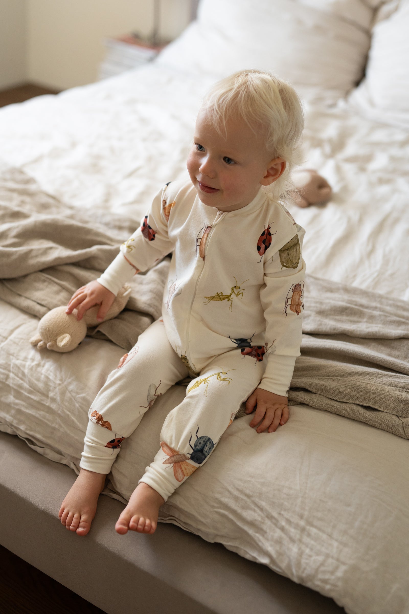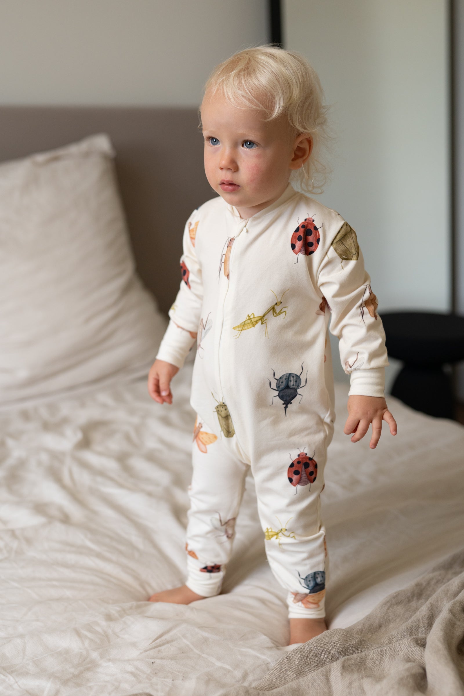 Wyposażony w wygodny zamek błyskawiczny na całej długości, co ułatwia ubieranie i przewijanie. Dodatkowo pajacyk posiada osłonkę przy szyi, która chroni delikatną skórę dziecka przed otarciami.