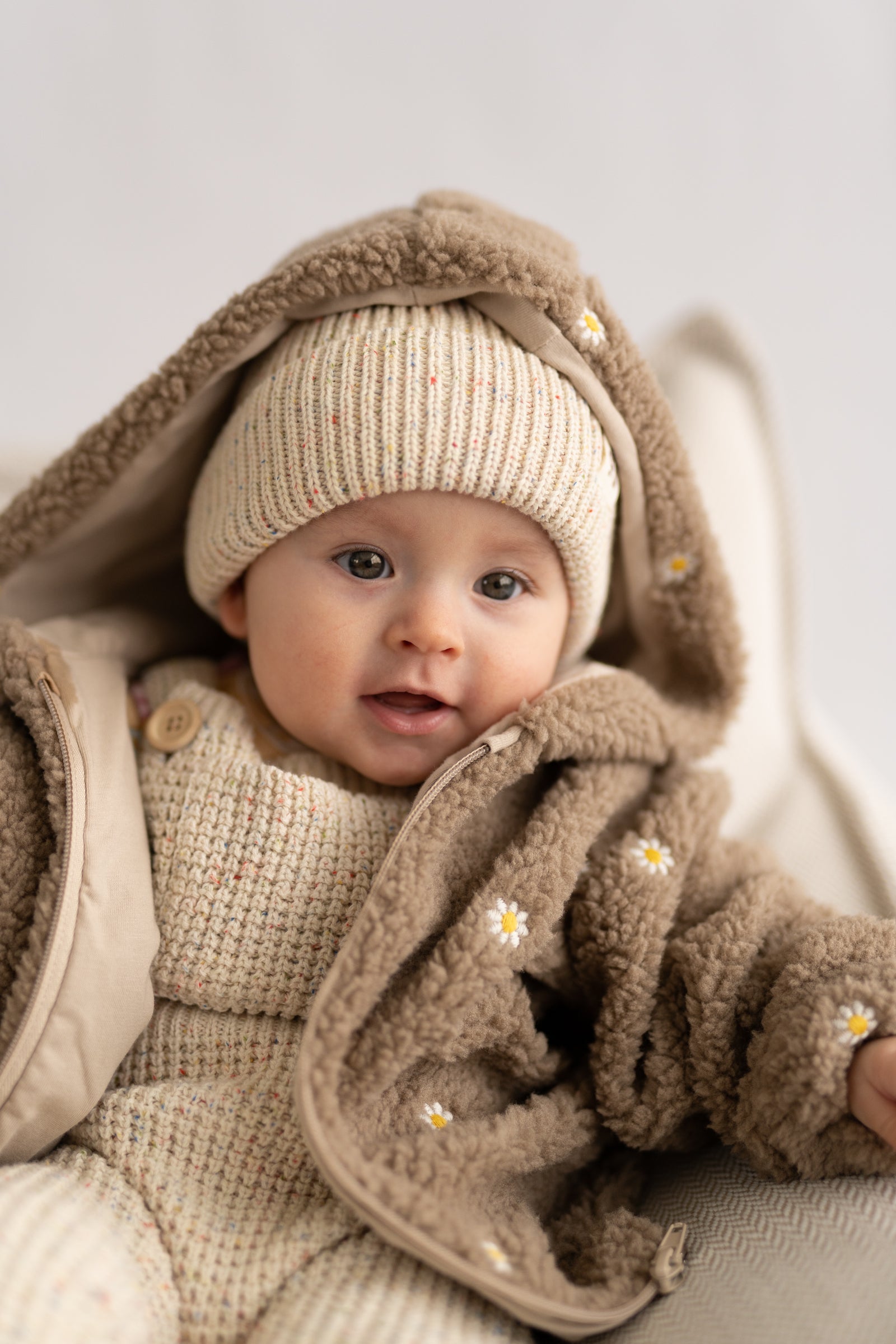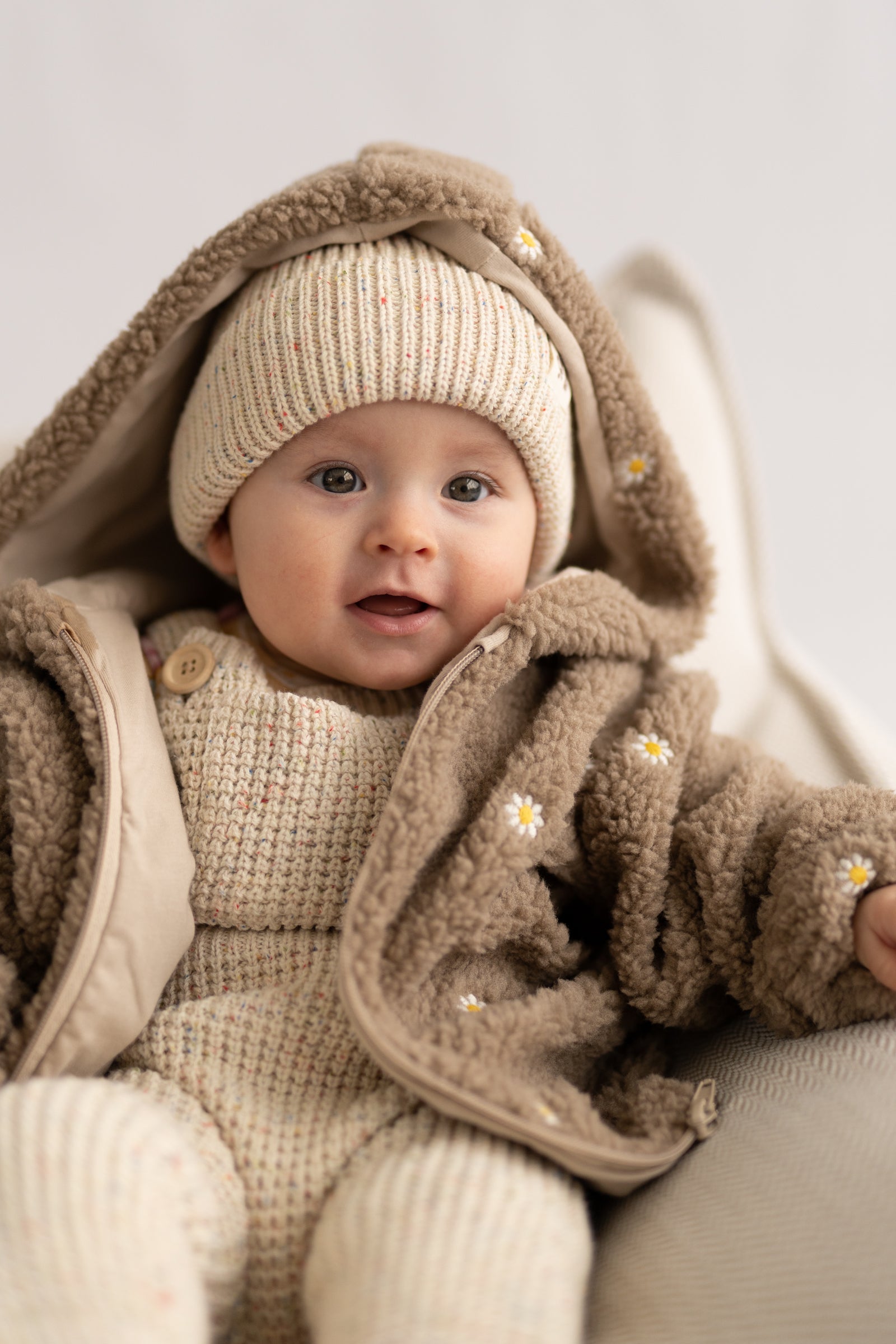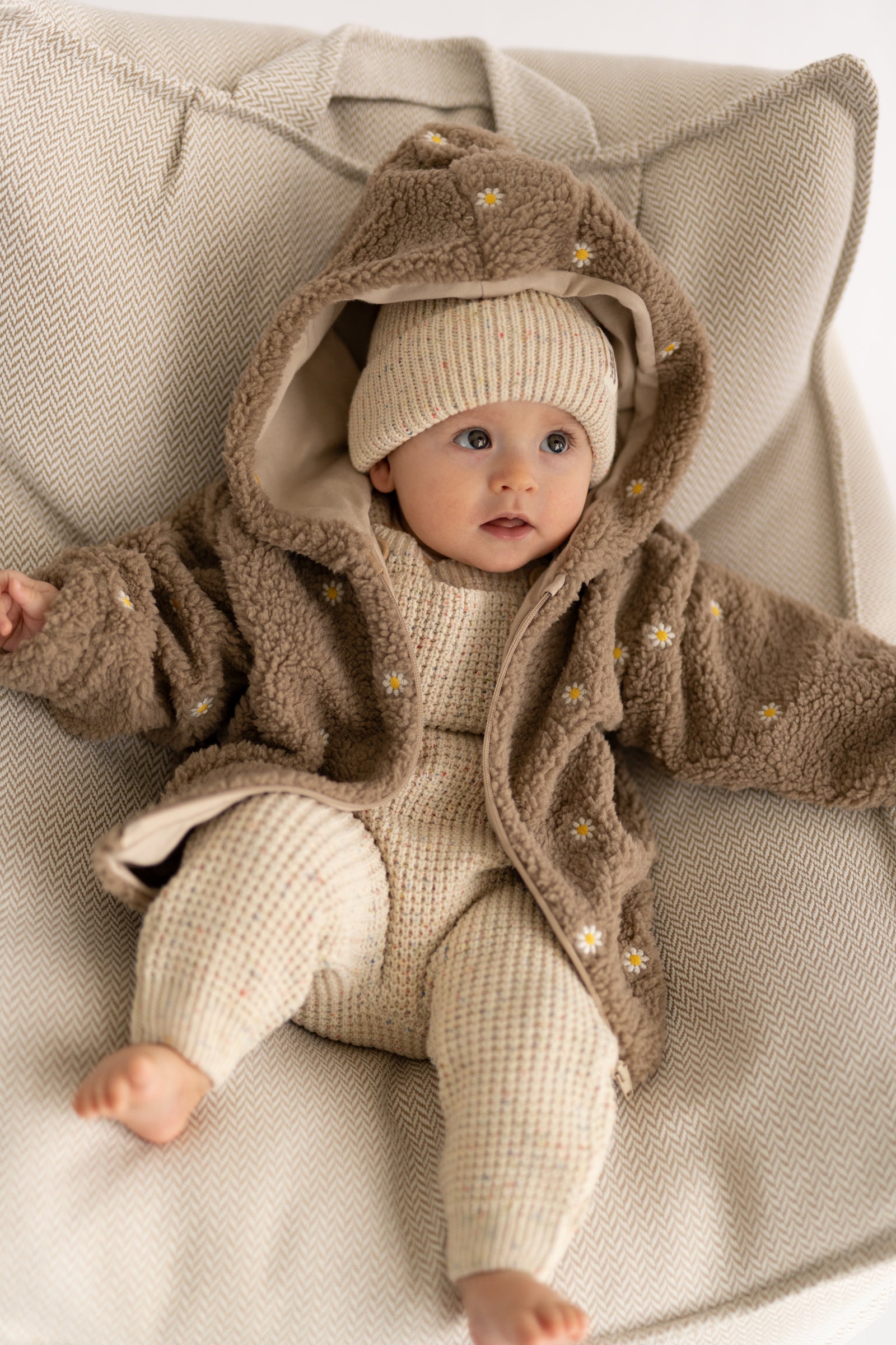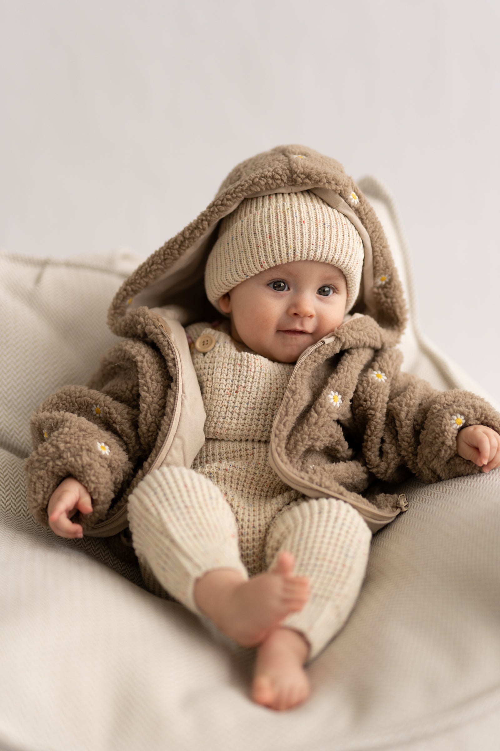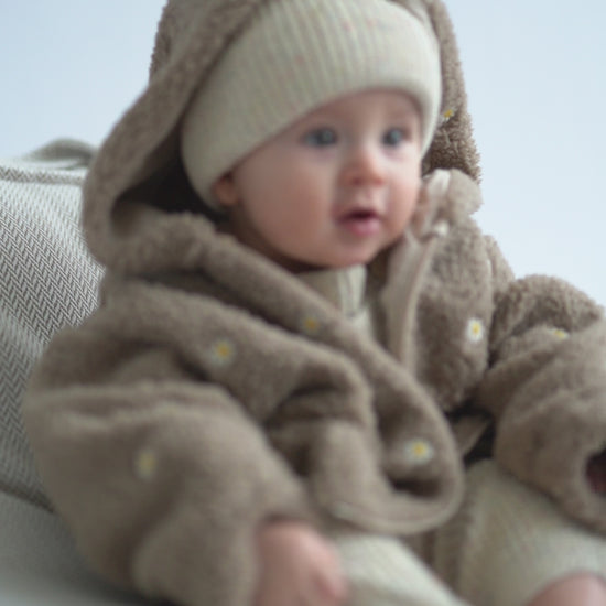 Miękki, otulający polar w naturalnym odcieniu, ozdobiony subtelnym haftem kwiatowym. Wykonany z przyjemnego w dotyku materiału, który zapewnia ciepło i komfort noszenia w chłodniejsze dni. Delikatne kwiatowe detale dodają całości lekkości i romantycznego charakteru, tworząc balans między funkcjonalnością a estetyką. Idealny jako warstwa wierzchnia lub cozy element codziennych stylizacji.