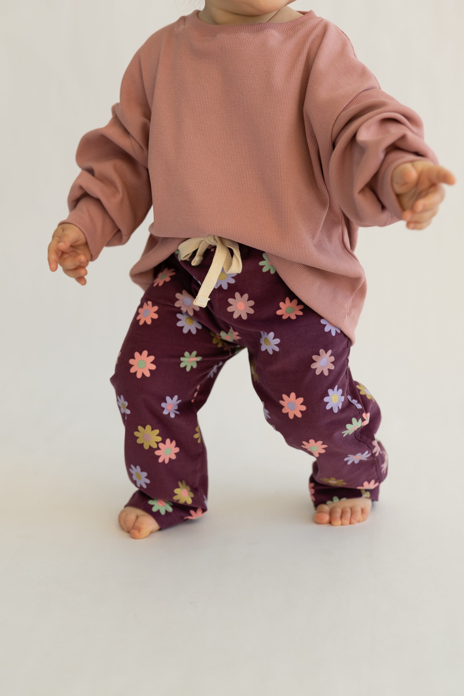 Spodnie sztruksowe Floral Plum w stylu baggy
