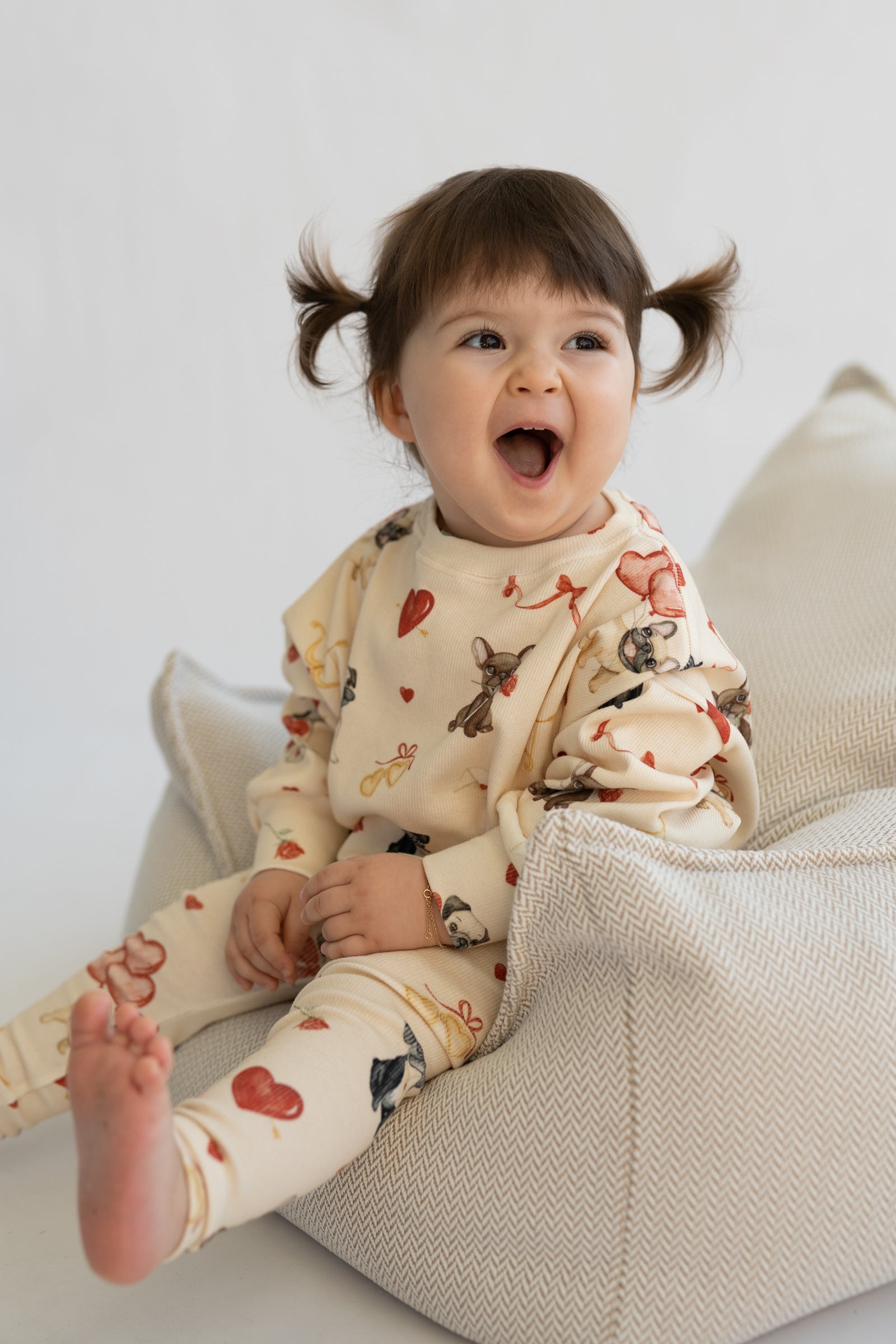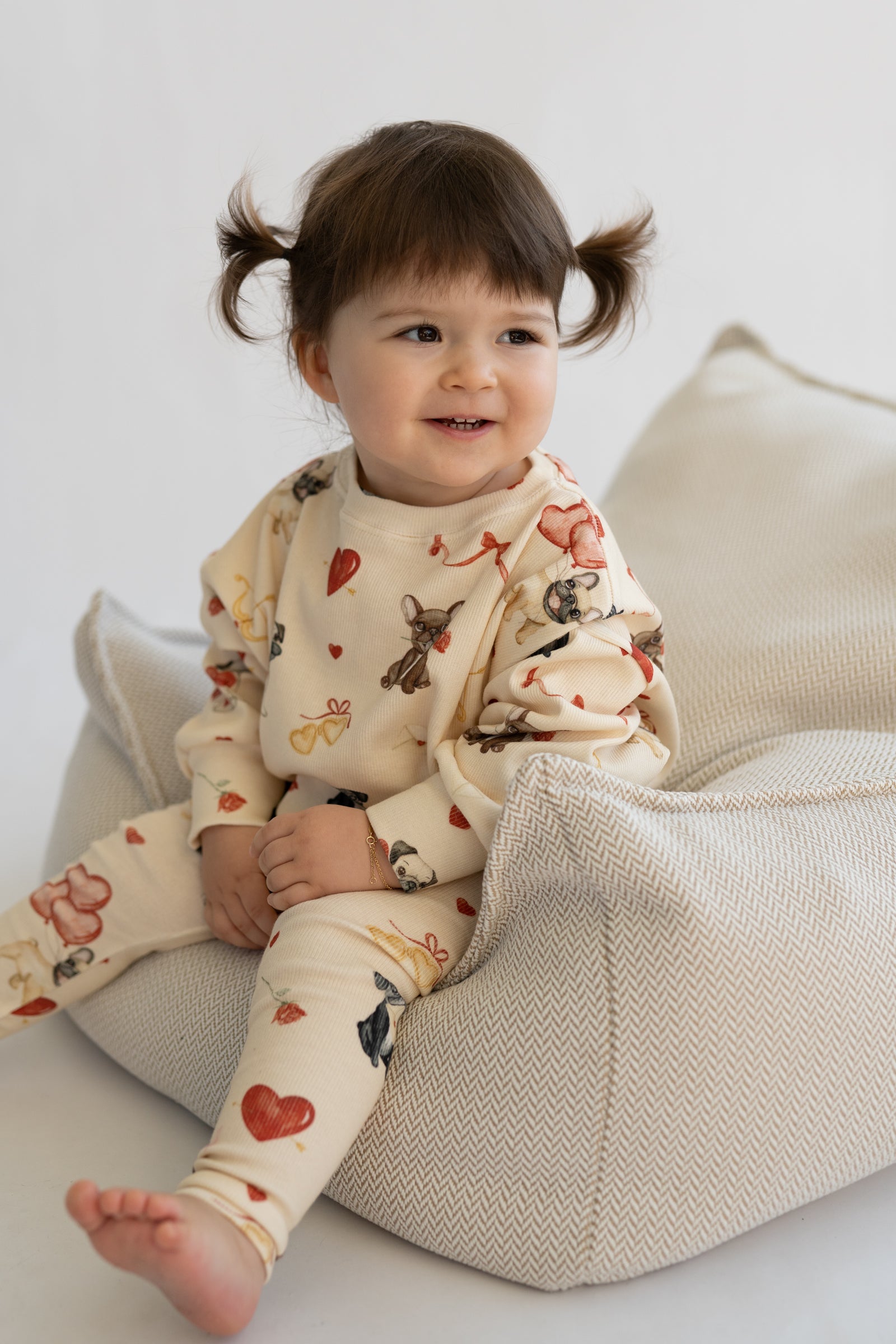 Luźny fason zapewnia pełną swobodę ruchów, a staranne wykończenie gwarantuje komfort noszenia przez cały dzień. Uniwersalny krój i subtelny wzór sprawiają, że bluza świetnie komponuje się z legginsami lub spodniami, tworząc spójne i stylowe zestawy.