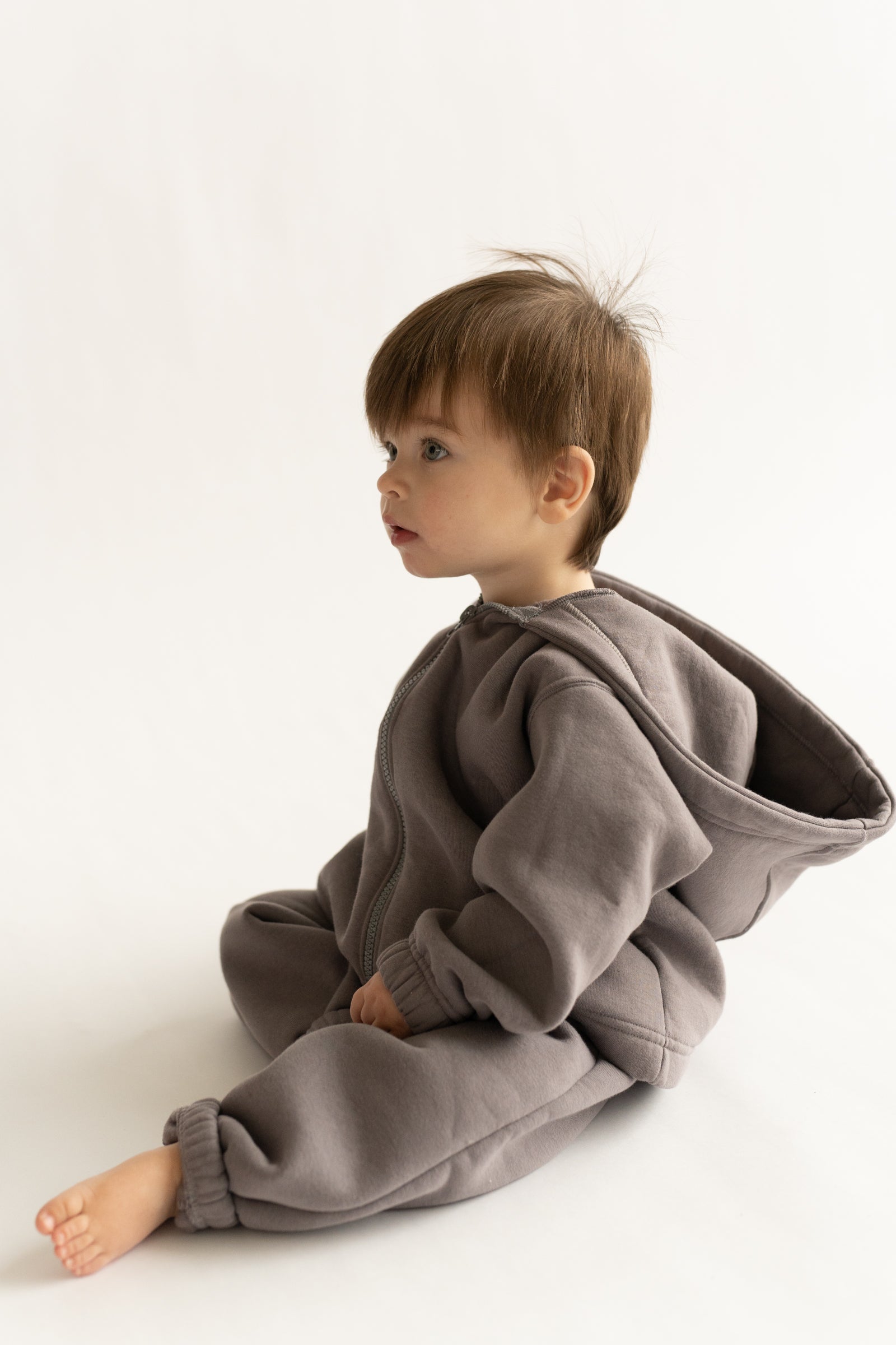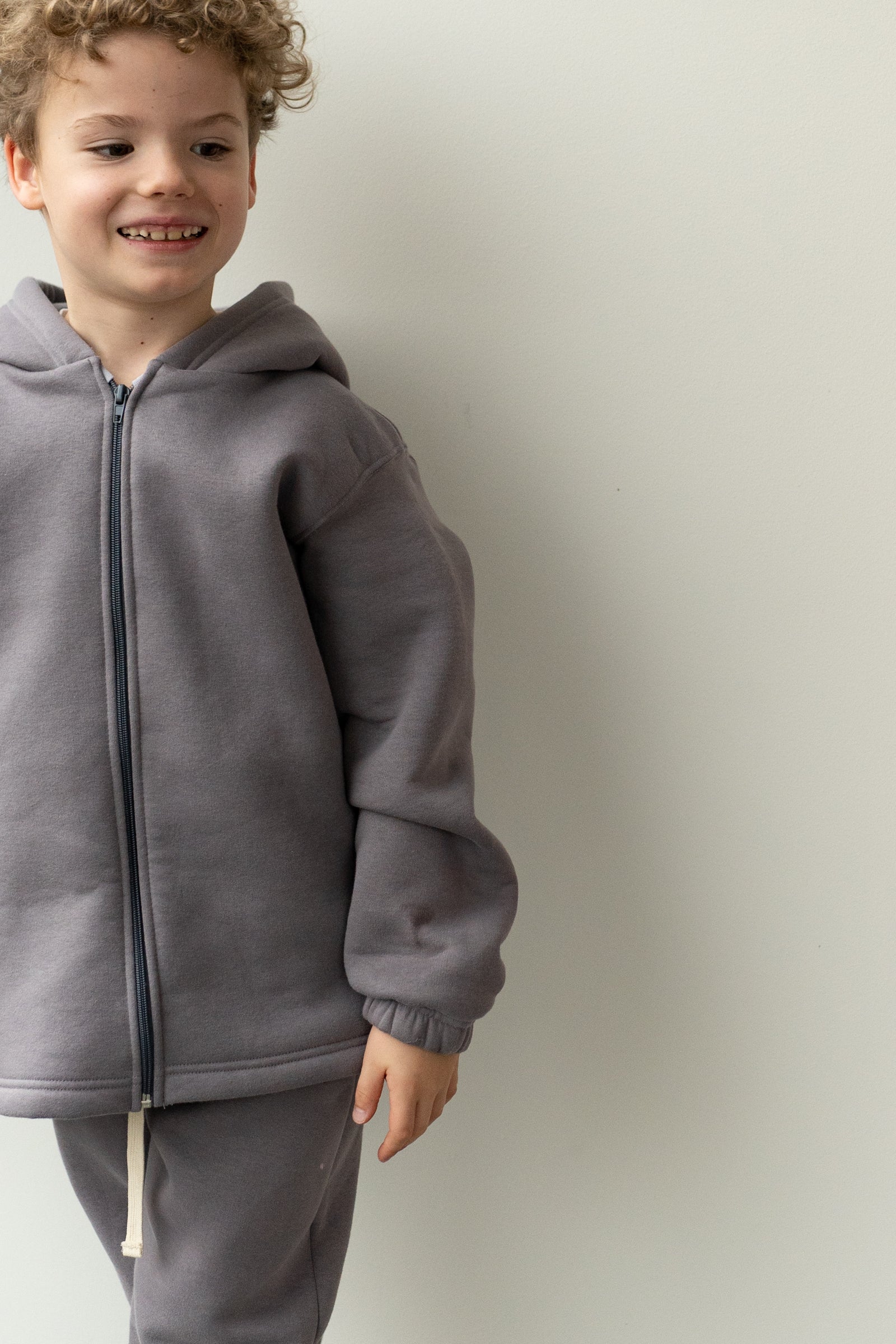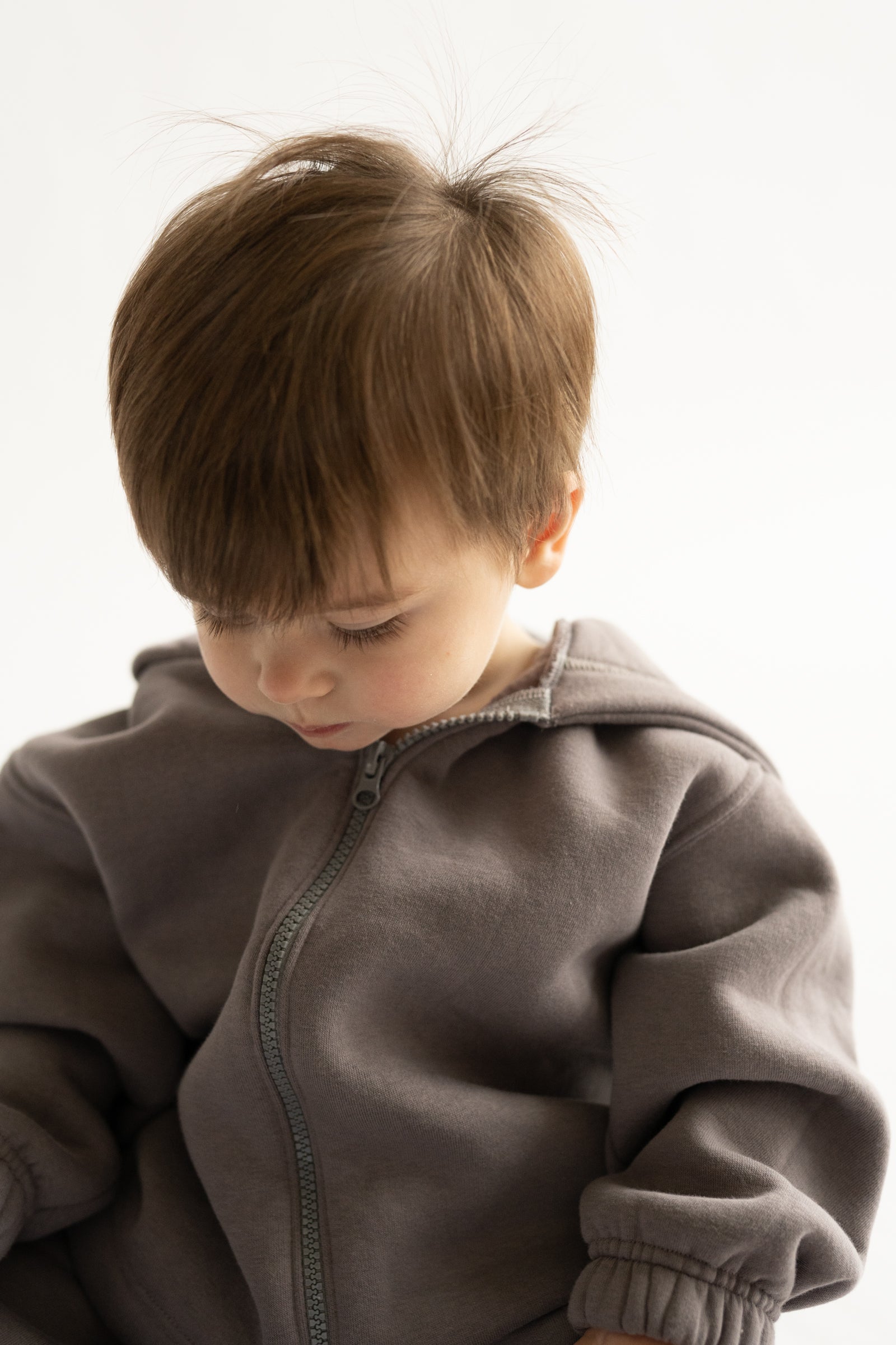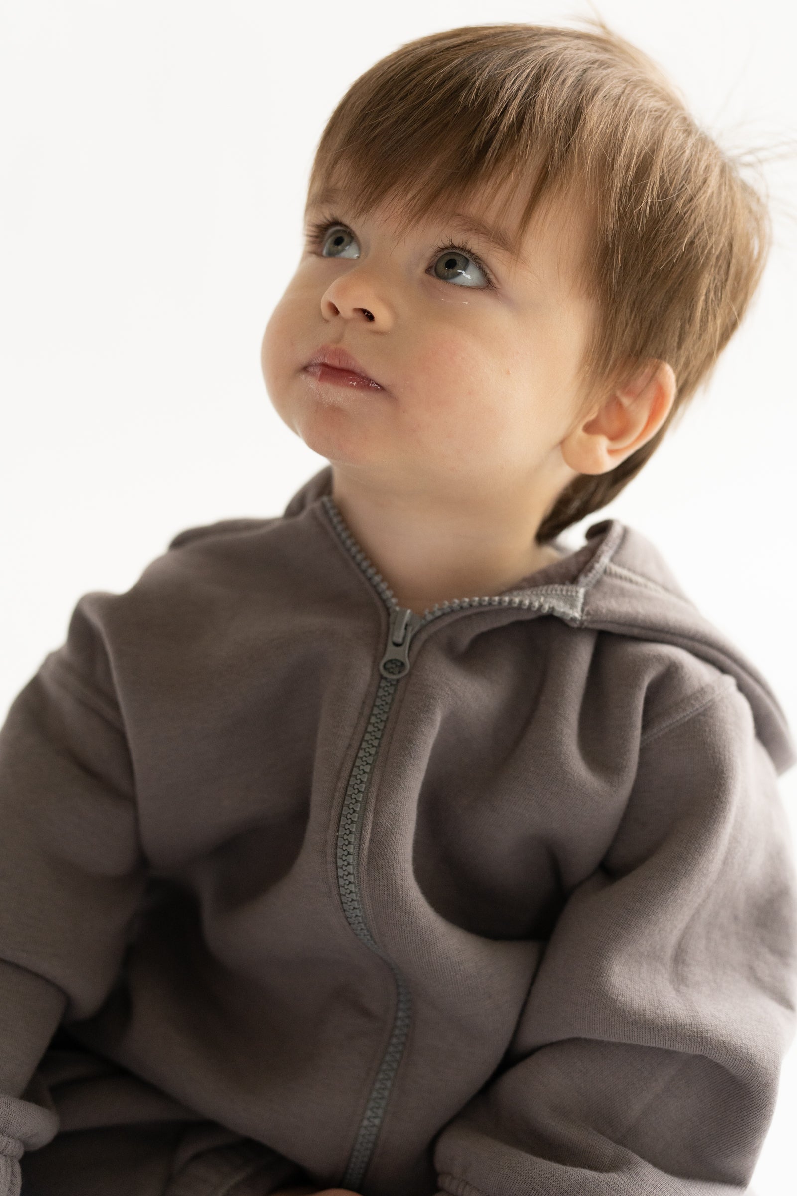 Bluza dziecięca o luźnym kroju, zapinana na zamek błyskawiczny. Wykonana z miękkiego, przyjemnego w dotyku materiału, który zapewnia komfort i swobodę ruchów. Posiada praktyczny kaptur oraz elastyczne ściągacze przy rękawach, dzięki czemu dobrze dopasowuje się do sylwetki i chroni przed chłodem. Idealna na co dzień – do zabawy, spacerów czy przedszkola.