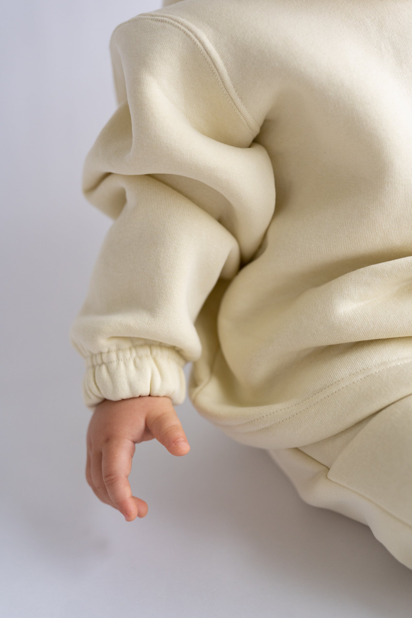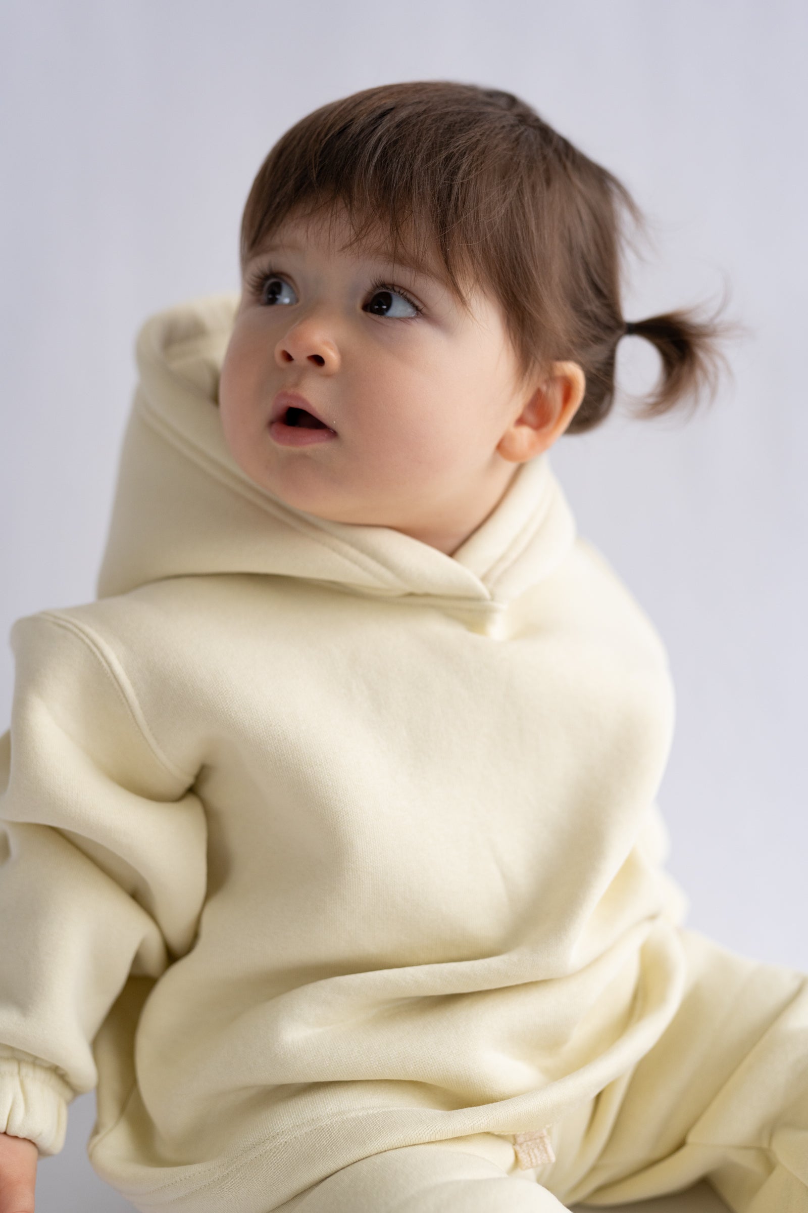 Bluza dziecięca o prostym, wygodnym kroju, stworzona z myślą o komforcie najmłodszych. Uszyta z miękkiej, przyjemnej w dotyku dzianiny, która jest delikatna dla skóry dziecka. Luźny fason nie ogranicza ruchów, a kaptur oraz elastyczne ściągacze przy rękawach zapewniają wygodę i ochronę przed chłodem. Idealna na co dzień — do zabawy, przedszkola czy spacerów.