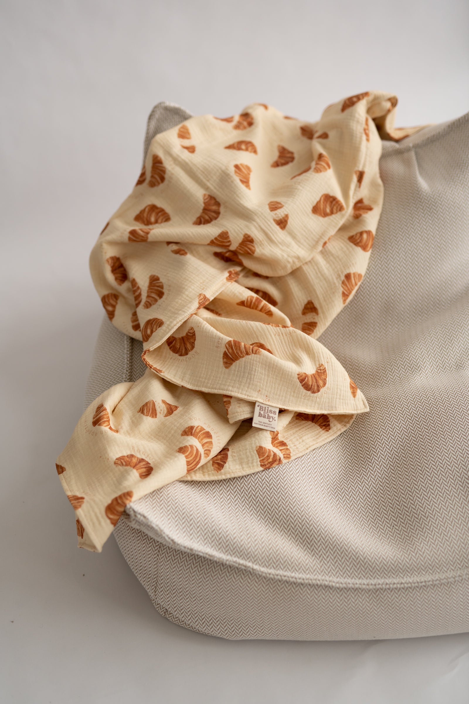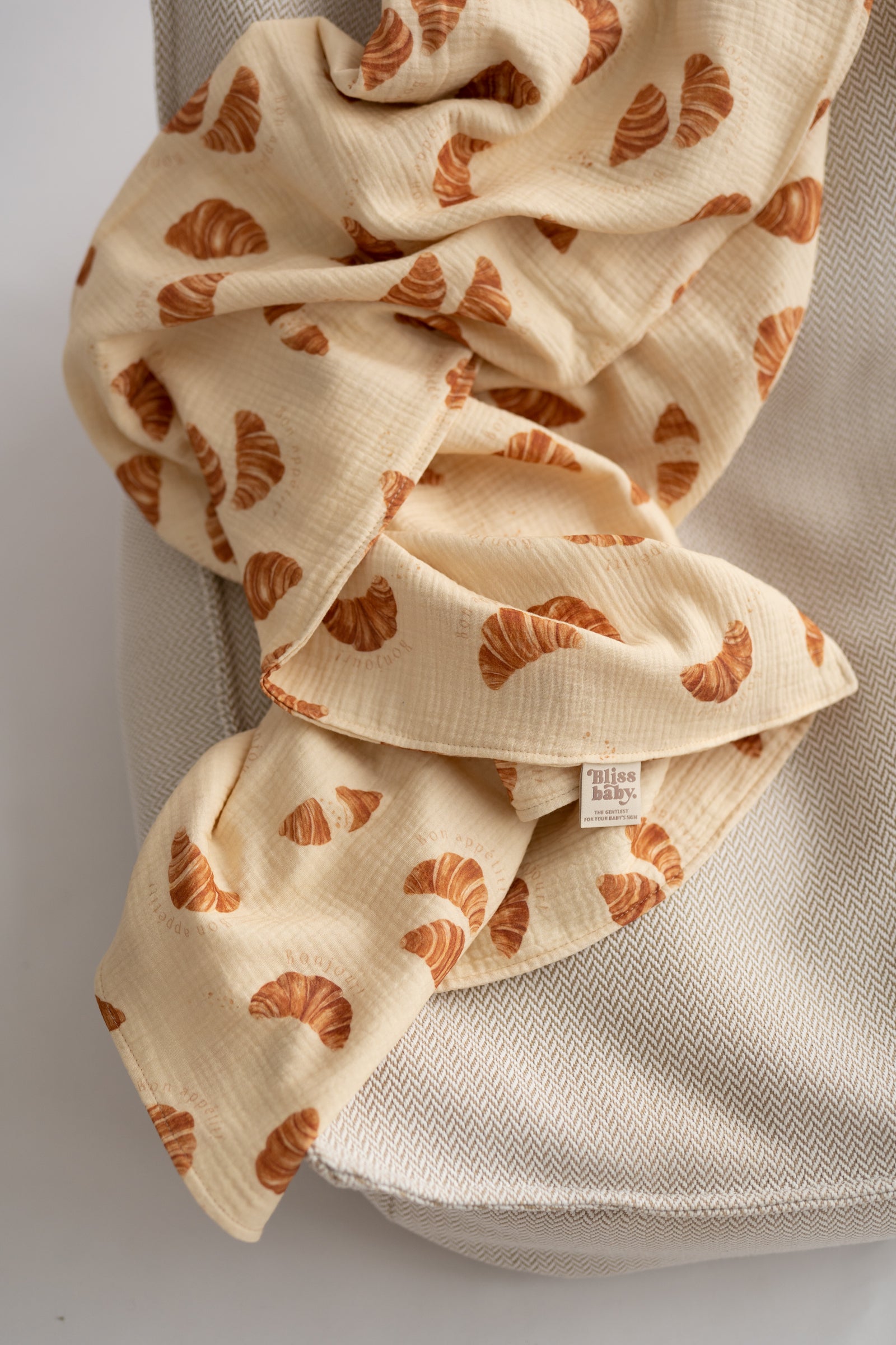 Muślinowy otulacz z motywem croissantów