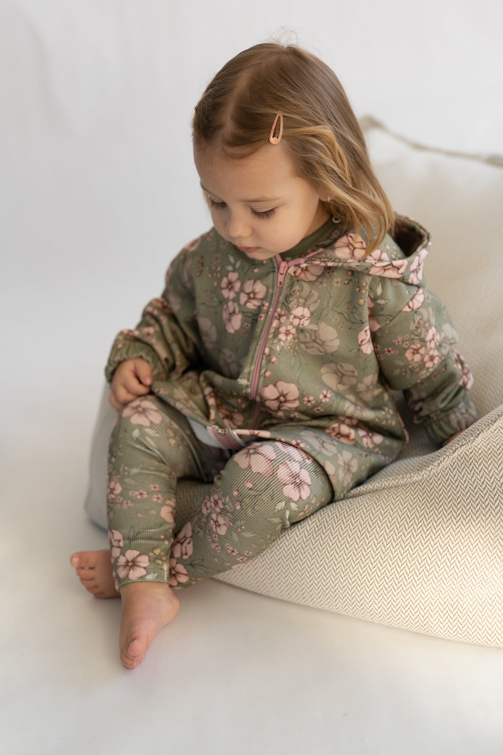 Elastyczny pas w talii gwarantuje idealne dopasowanie bez ucisku, a przyjemny w dotyku materiał sprawia, że legginsy są odpowiednie nawet dla bardzo wrażliwej skóry. Subtelny, uroczy wzór nadaje całości wyjątkowego charakteru i doskonale komponuje się z innymi elementami kolekcji.