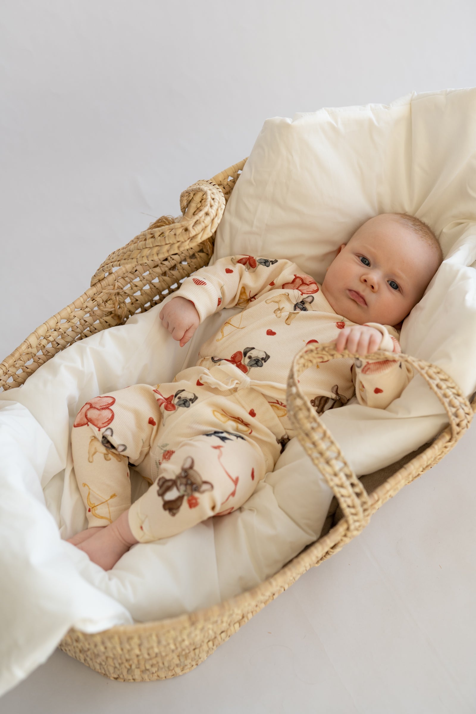 Elastyczny pas w talii gwarantuje idealne dopasowanie bez ucisku, a przyjemny w dotyku materiał sprawia, że legginsy są odpowiednie nawet dla bardzo wrażliwej skóry. Subtelny, uroczy wzór nadaje całości wyjątkowego charakteru i doskonale komponuje się z innymi elementami kolekcji.