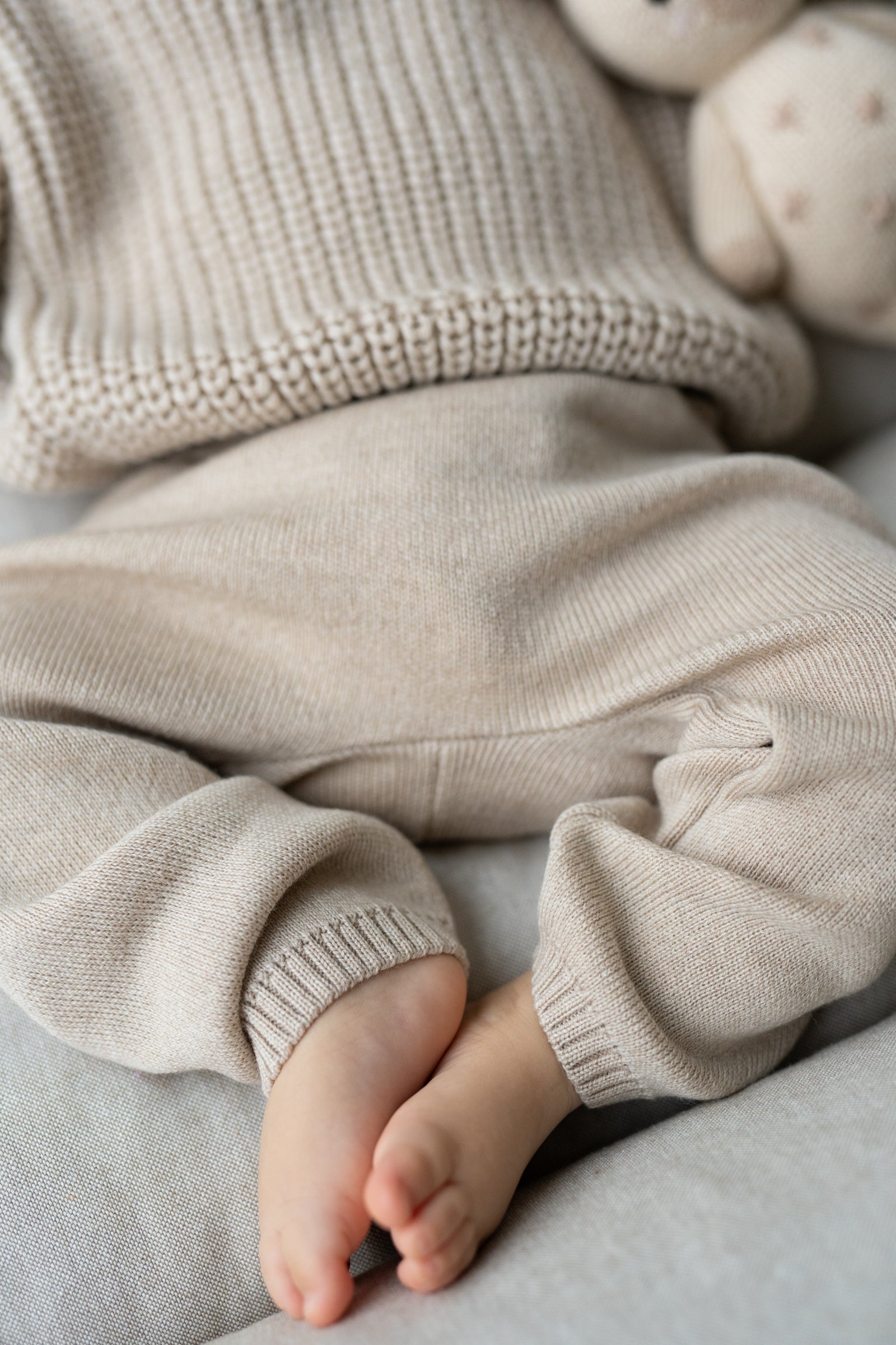 Leggisny Merino - beż to wyjątkowo miękkie i elastyczne legginsy dla maluchów, wykonane z wysokiej jakości wełny merynosów. Naturalne włókna merino zapewniają doskonałą termoregulację – ogrzewają, gdy jest chłodno, a jednocześnie pozwalają skórze oddychać.