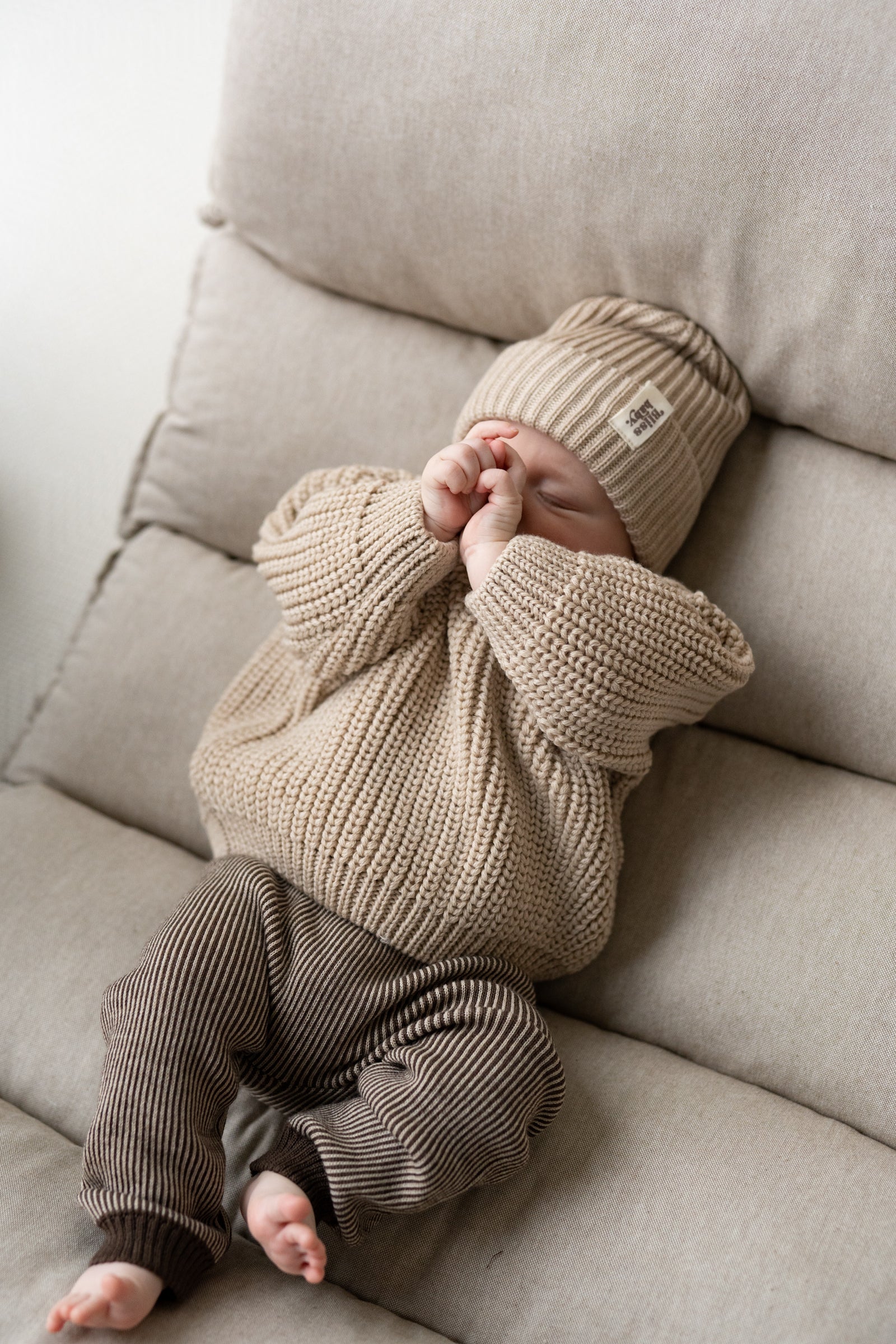 Leggisny Merino – STRIPES, połączenie beżu z brązem to wyjątkowo miękkie i elastyczne legginsy dla maluchów, wykonane z wysokiej jakości wełny merynosów. Naturalne włókna merino zapewniają doskonałą termoregulację – ogrzewają, gdy jest chłodno, a jednocześnie pozwalają skórze oddychać.
