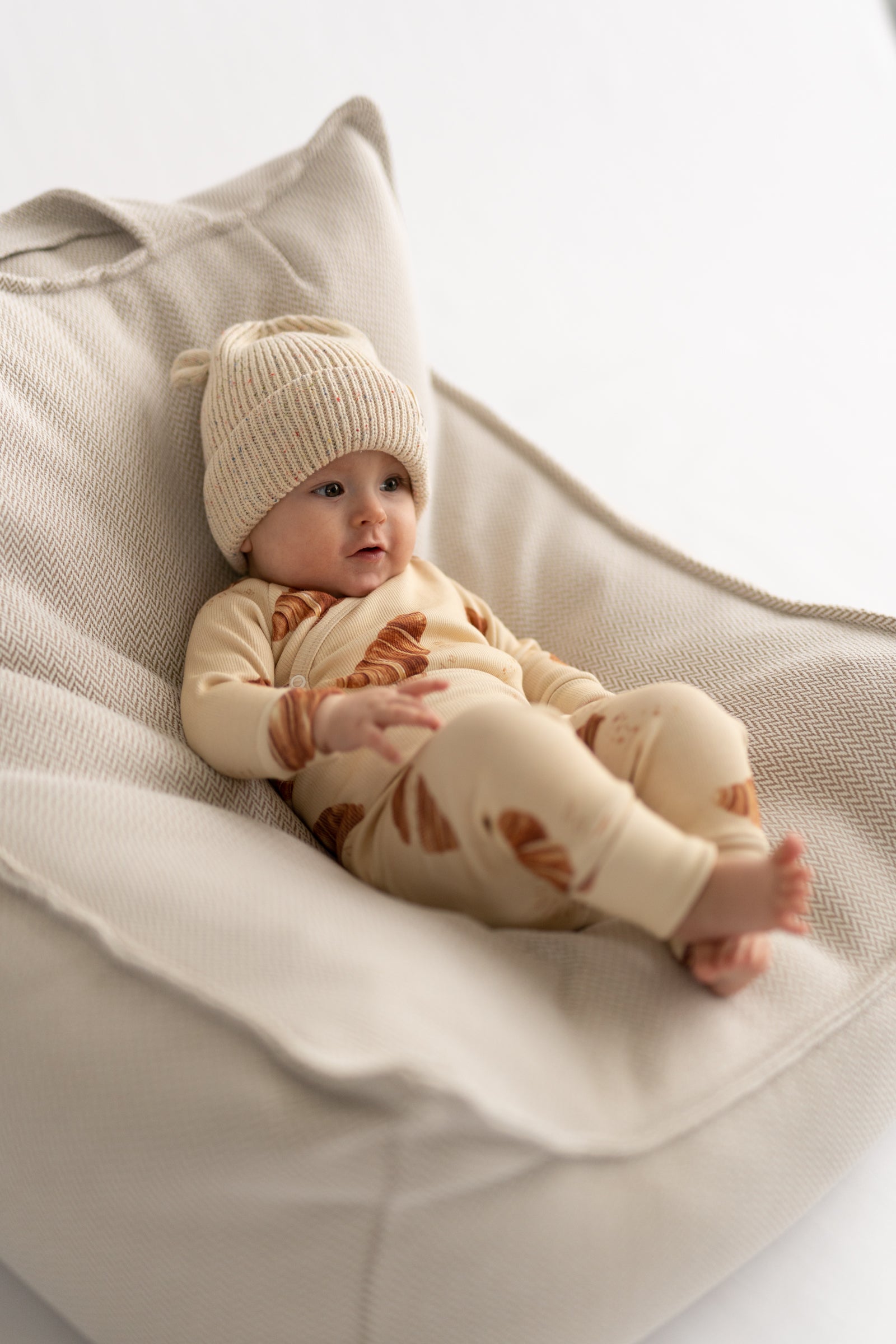 Miękkie i elastyczne legginsy niemowlęce zaprojektowane z myślą o codziennym komforcie najmłodszych. Wykonane z wysokiej jakości dzianiny bawełnianej z dodatkiem elastanu, delikatnie otulają skórę dziecka, nie krępując ruchów i zapewniając pełną swobodę podczas zabawy, snu i odpoczynku.