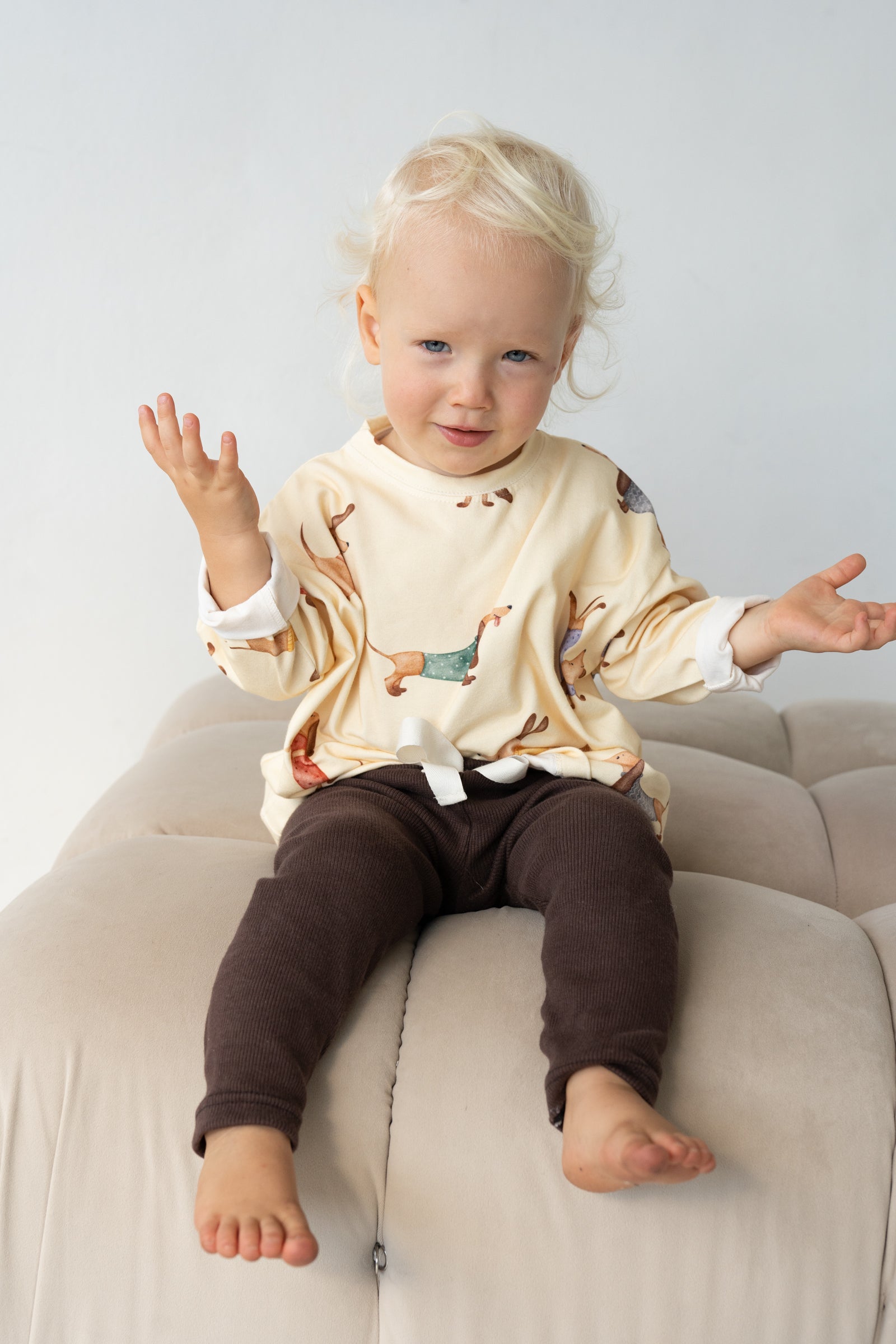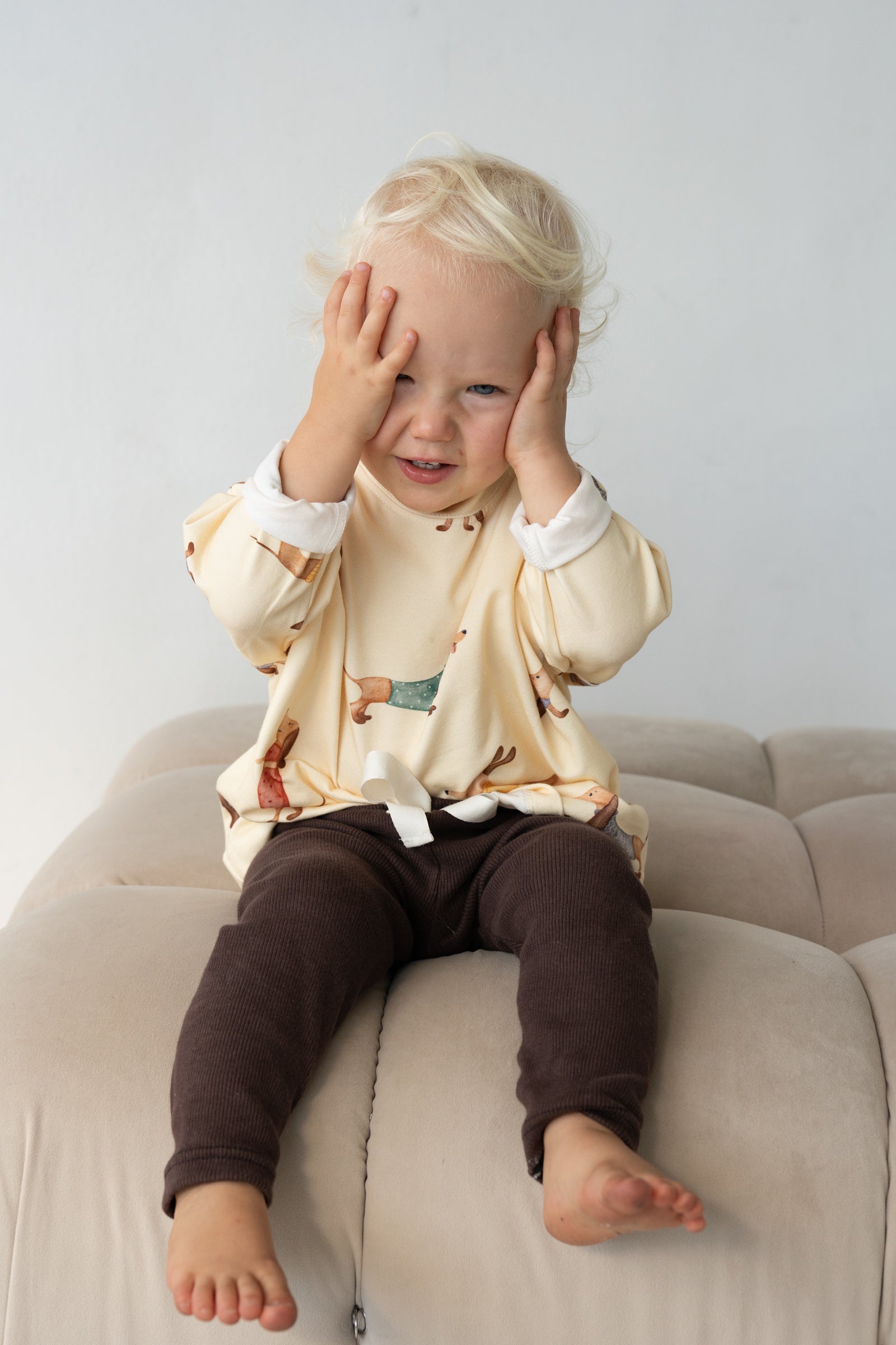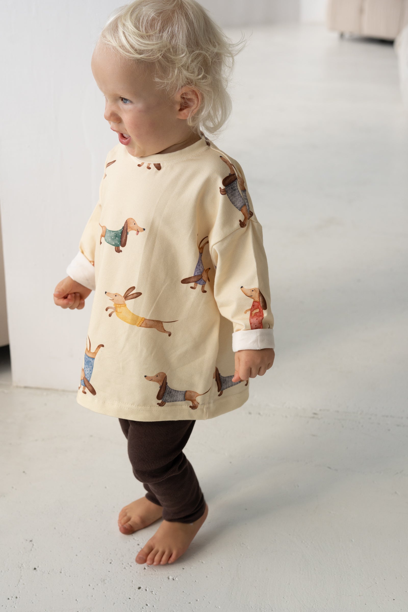 Wyjątkowy nadruk nadaje mu niepowtarzalnego charakteru i sprawia, że to ubranie szybko stanie się ulubionym elementem garderoby malucha. Idealnie sprawdzi się w zestawie z legginsami.