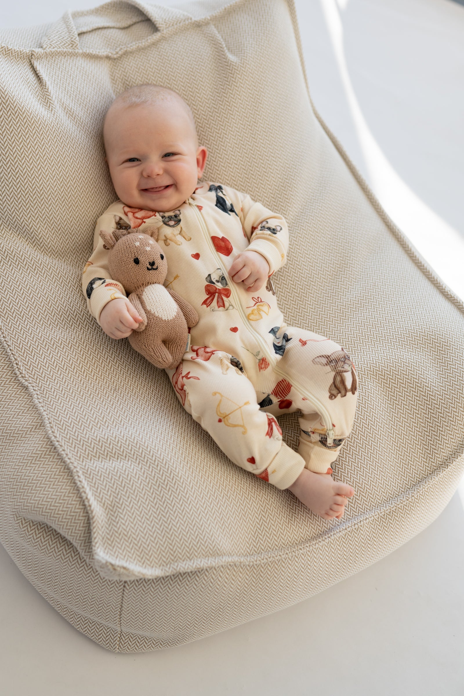 Zapięcie na zamek dwustronny na całej długości ułatwia szybkie przebieranie i przewijanie, a elastyczne mankiety rosnące zapewniają dobre dopasowanie bez ucisku. Przemyślany krój nie krępuje ruchów i pozwala dziecku swobodnie się poruszać, zarówno podczas snu, jak i aktywności w ciągu dnia.