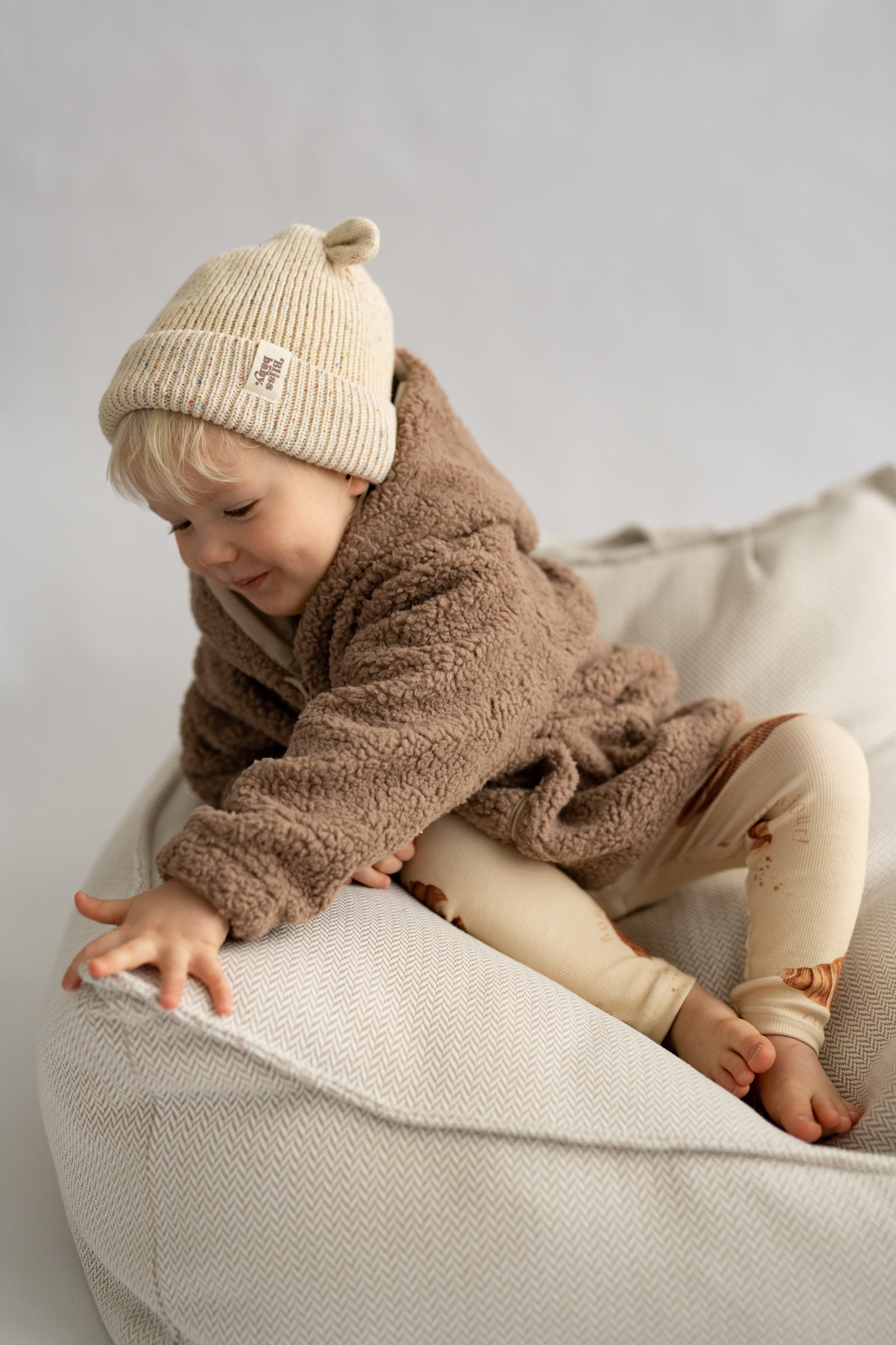 Miękki, otulający polar w naturalnym odcieniu. Wykonany z przyjemnego w dotyku materiału, który zapewnia ciepło i komfort noszenia w chłodniejsze dni. Idealny jako warstwa wierzchnia lub cozy element codziennych stylizacji.