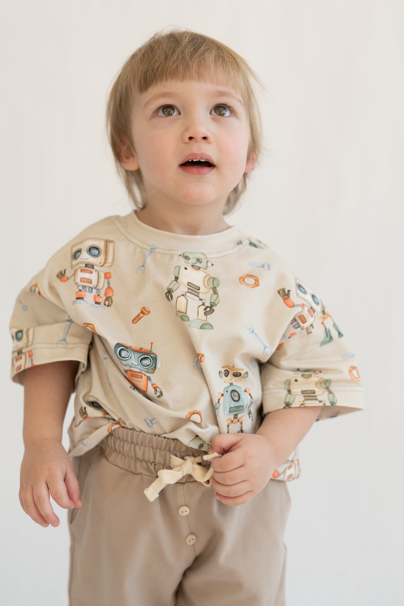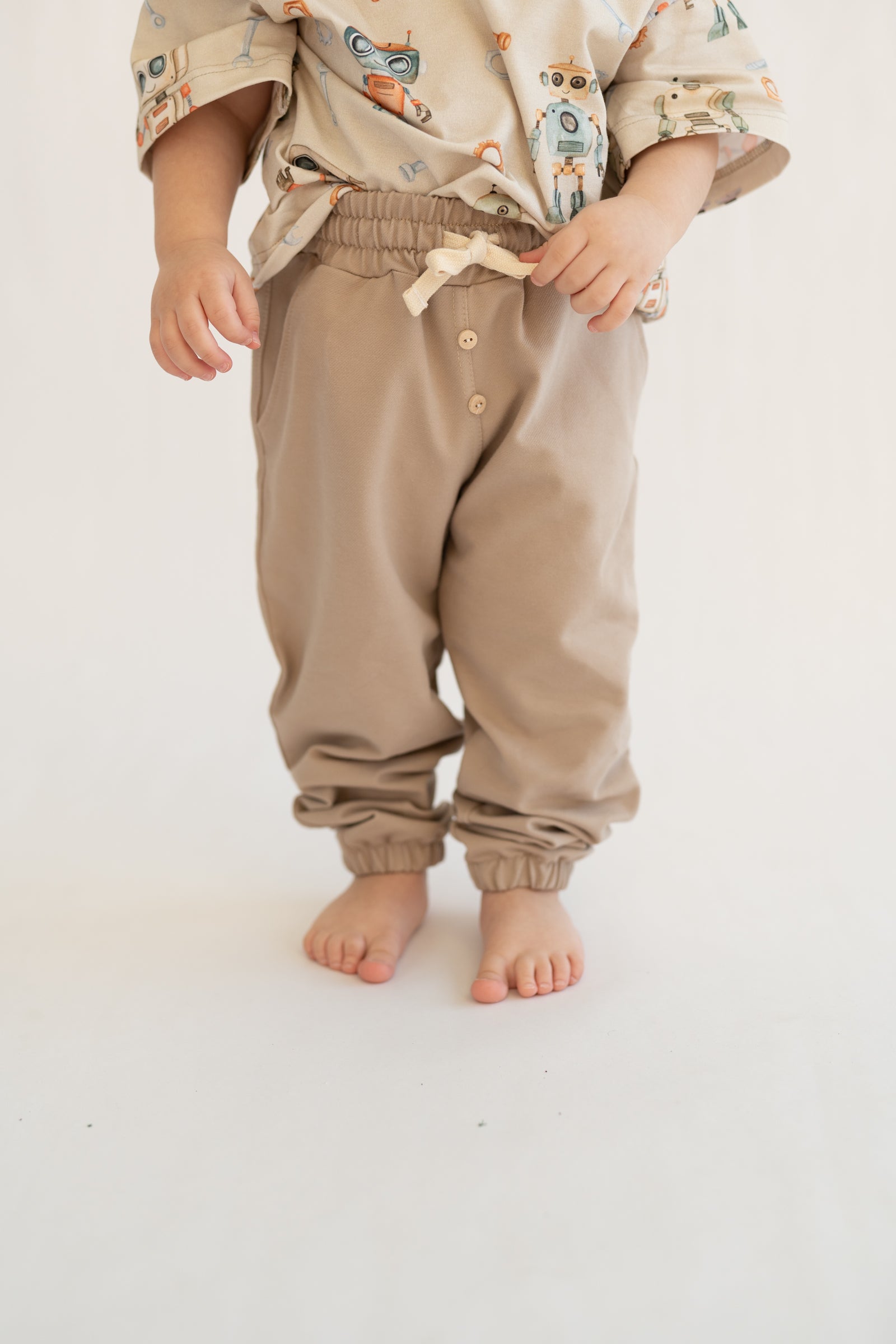 Wygodne spodnie dziecięce w kroju jogger, zaprojektowane z myślą o codziennym komforcie i aktywności dziecka. Jasny beżowy odcień light beige doskonale wpisuje się w naturalną, minimalistyczną estetykę i łatwo łączy się z innymi elementami garderoby.