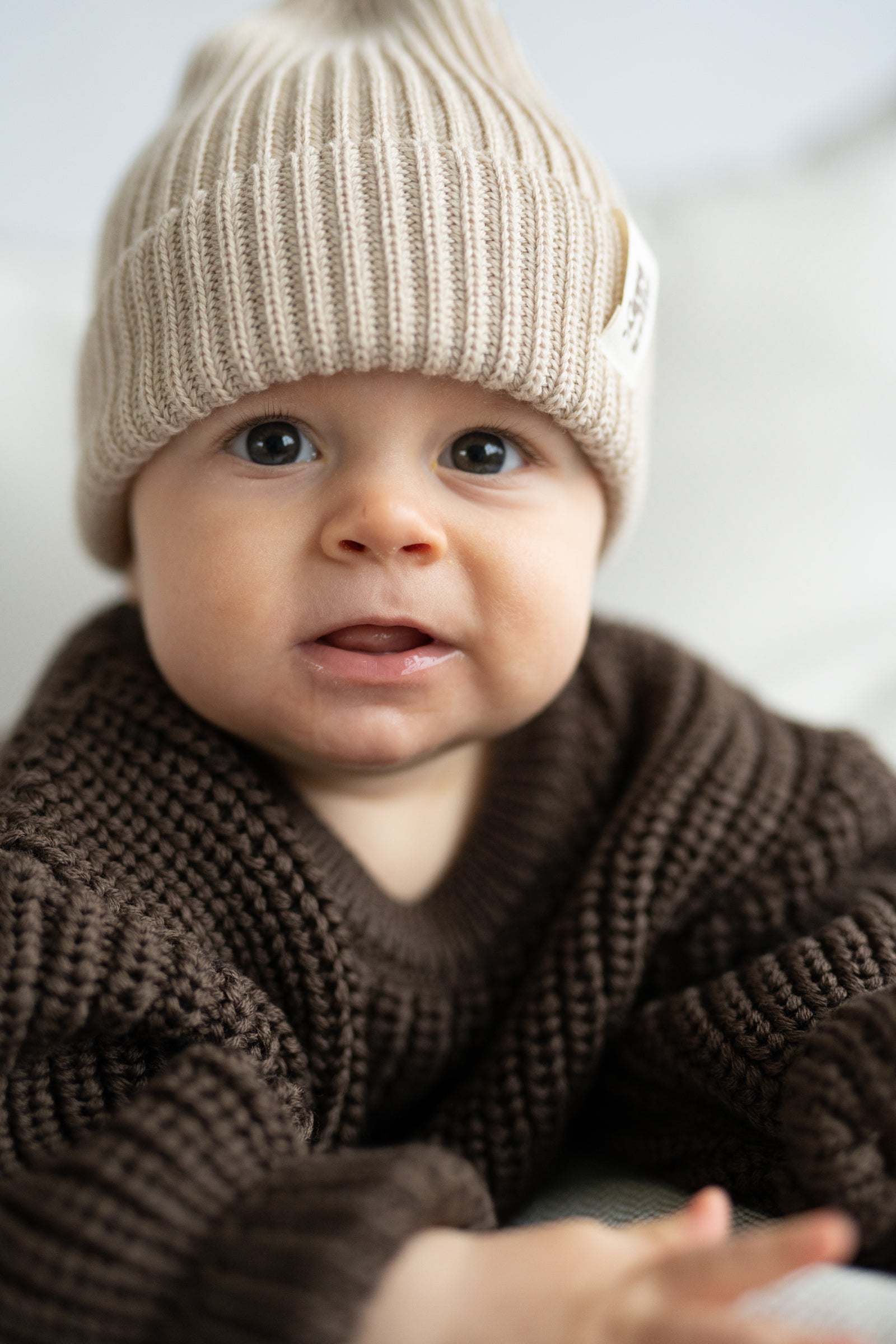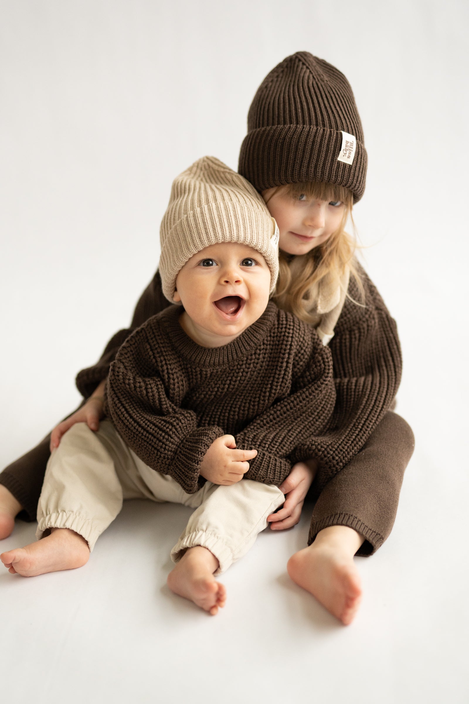 Czekoladowy sweter z 100% wełny merino to ponadczasowy element dziecięcej garderoby, który zachwyca zarówno wyglądem, jak i funkcjonalnością. Merino to wyjątkowe włókno — oddychające, miękkie, elastyczne i dbające o komfort termiczny niezależnie od pogody. Grzeje, gdy jest chłodno, i pomaga uniknąć przegrzania, gdy temperatura rośnie.