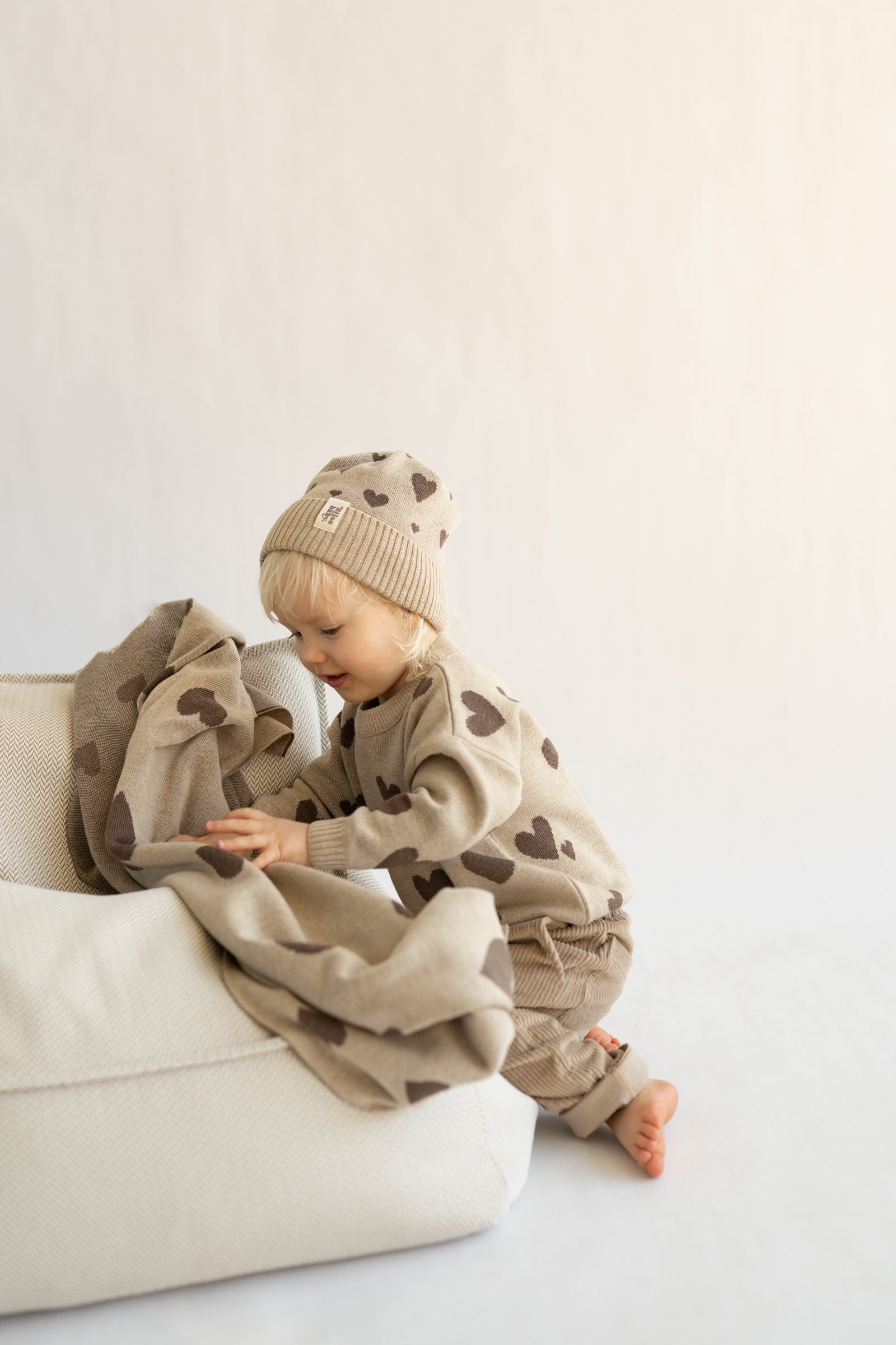 Naturalna delikatność merino sprawia, że sweter jest bezpieczny dla wrażliwej skóry dziecka, nie drapie i nie podrażnia. Luźny, oversize’owy krój nadaje mu komfortowego charakteru, pozwala na swobodę ruchów i świetnie układa się na niemowlakach oraz starszych dzieciach.