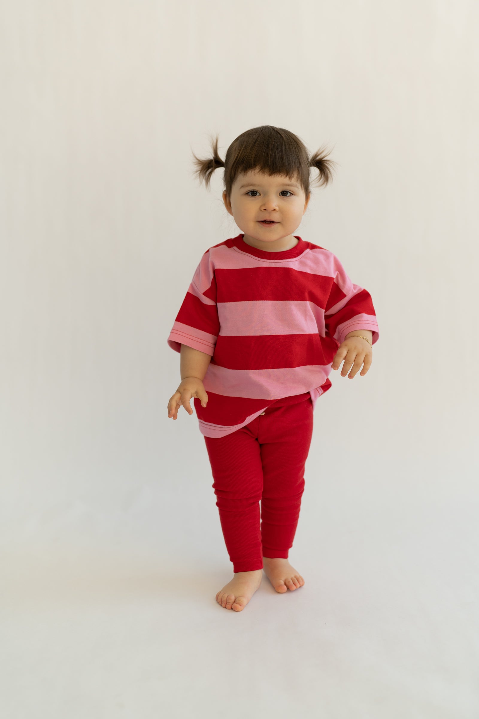 Bluzka dziecięca w różowej kolorystyce z klasycznym wzorem pasków. Wykonana z miękkiej, oddychającej dzianiny, zapewnia komfort noszenia przez cały dzień. Ponadczasowy motyw pasków w połączeniu z delikatnymi kolorami sprawia, że model jest łatwy do stylizowania i pasuje zarówno do codziennych, jak i bardziej dopracowanych zestawów.