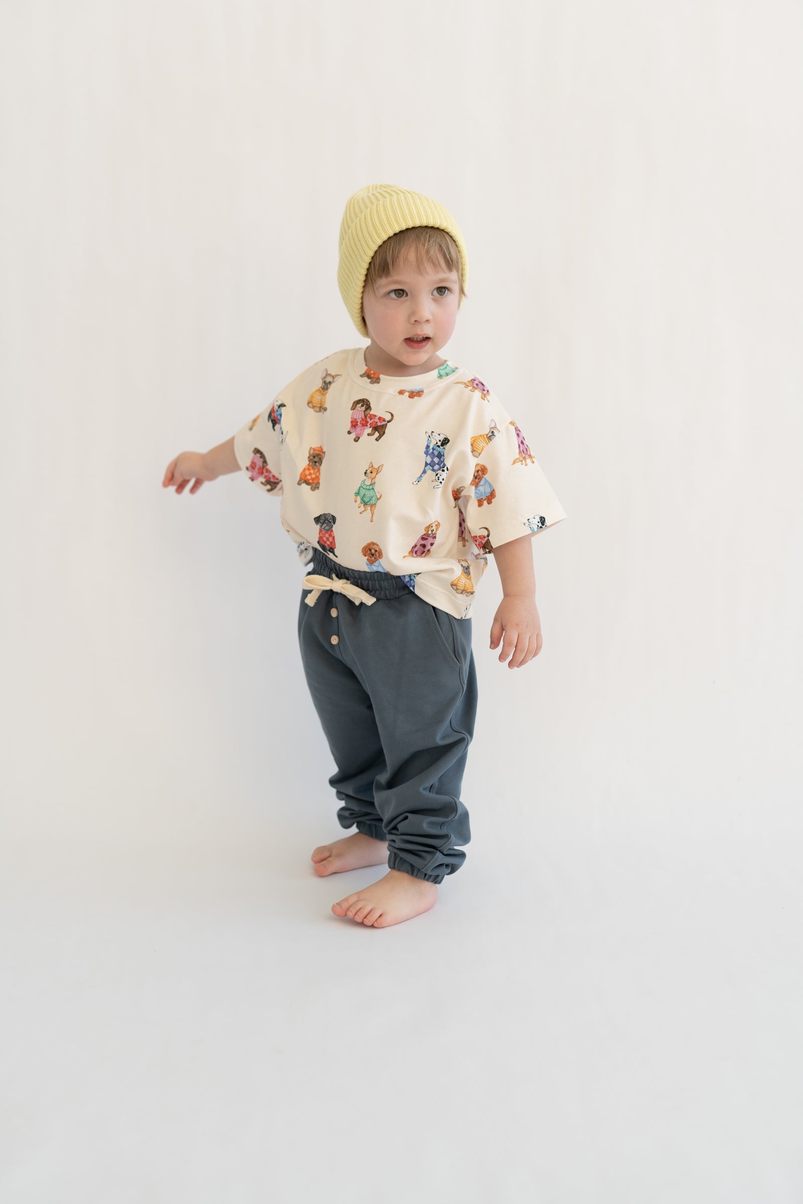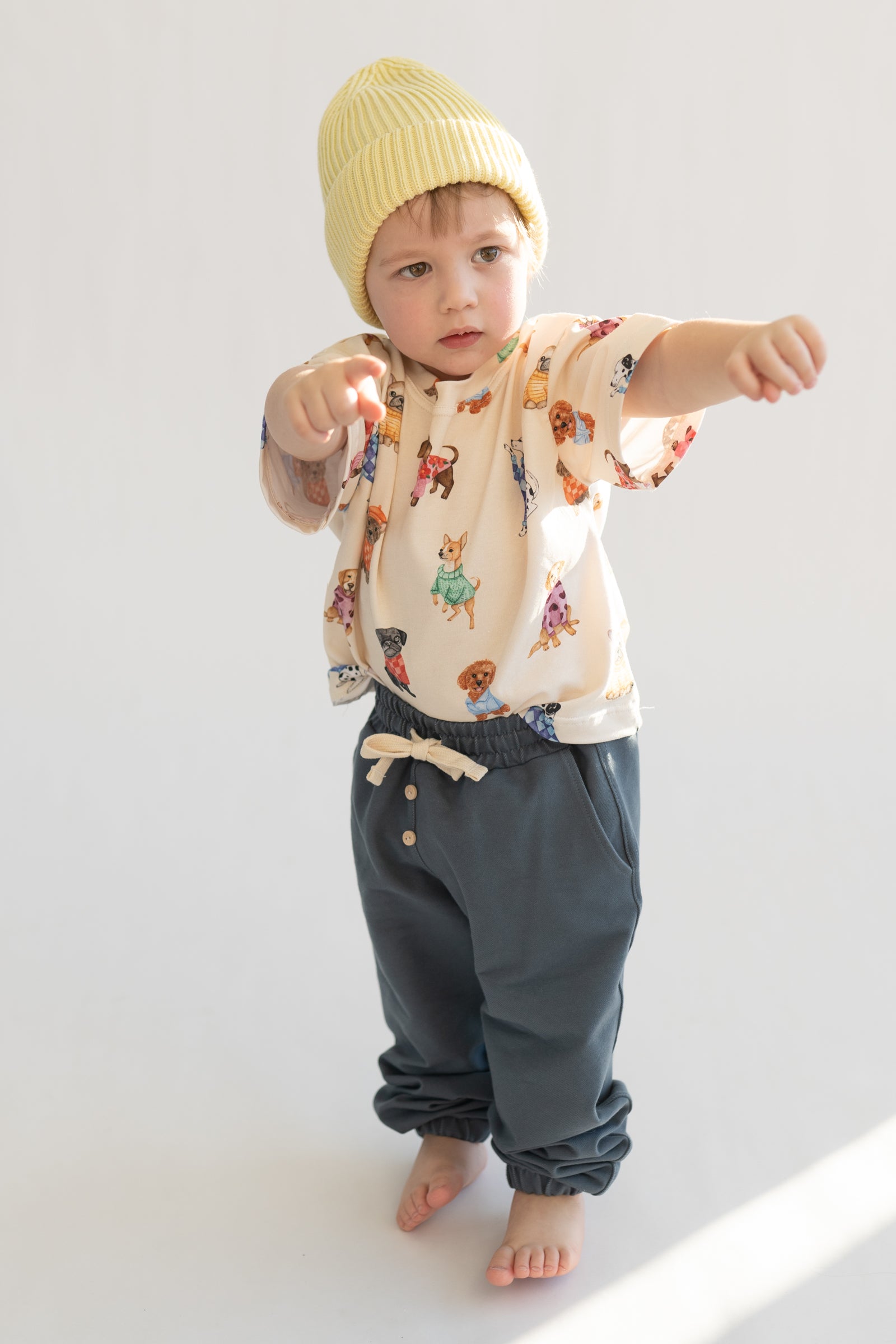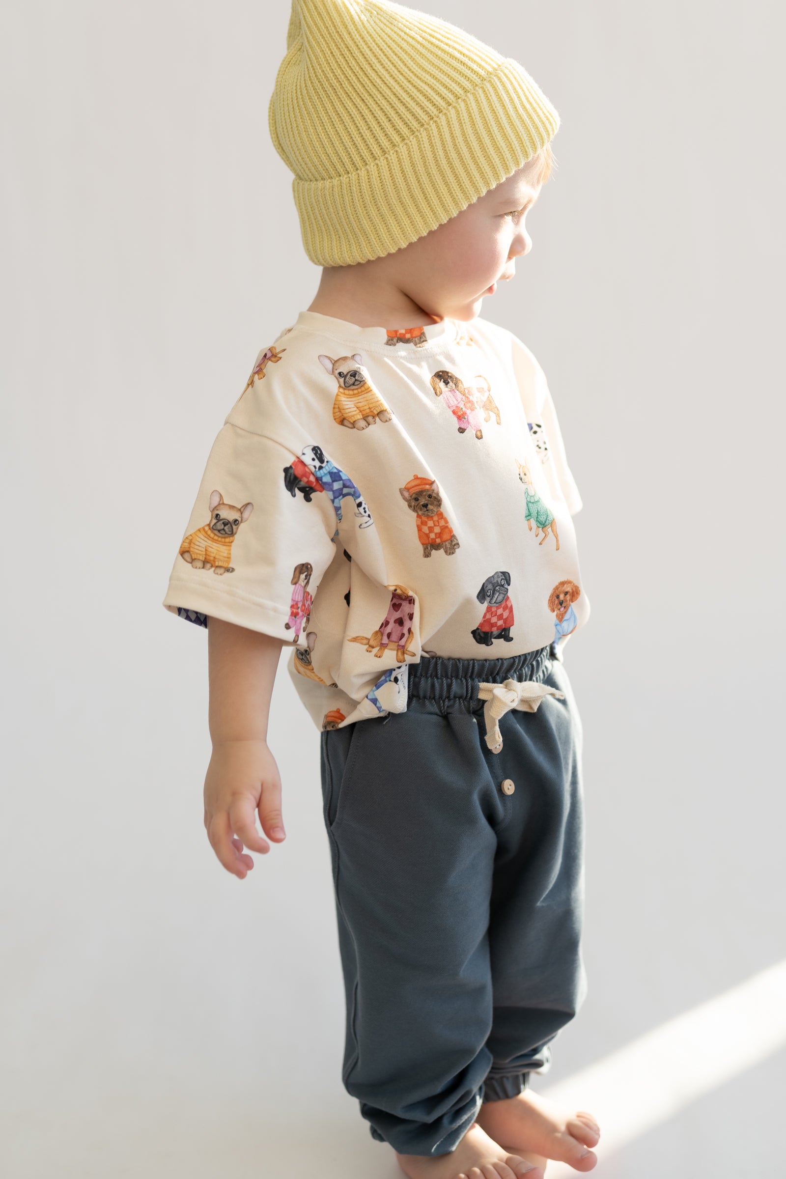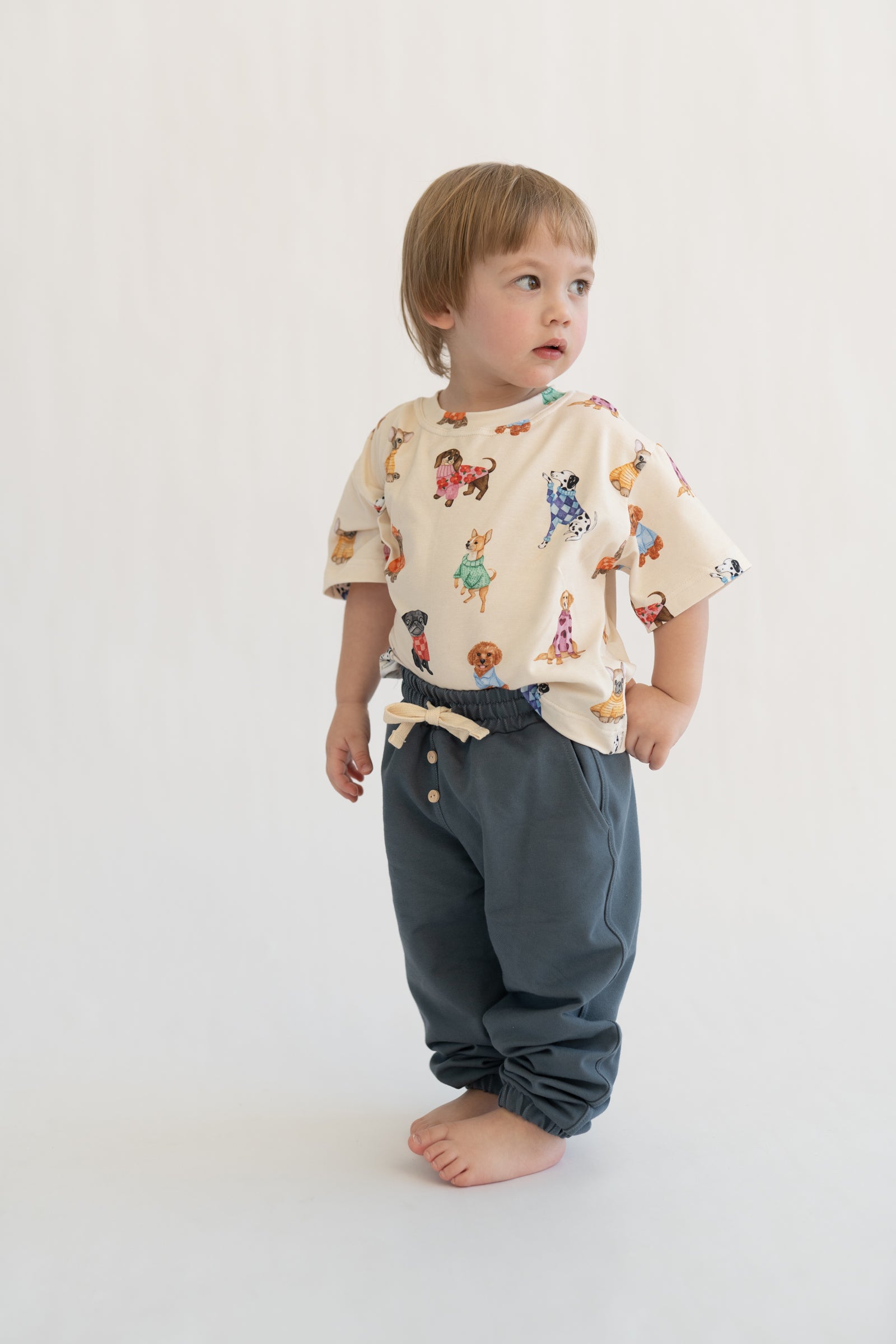 Bluzka dziecięca w kremowym kolorze z delikatnym wzorem piesków. Wykonana z miękkiej, oddychającej dzianiny, zapewnia komfort noszenia przez cały dzień. Neutralna kolorystyka sprawia, że łatwo dopasować ją do innych elementów garderoby. Klasyczny krój nie krępuje ruchów i sprawdzi się zarówno na co dzień, jak i na wyjątkowe okazje.