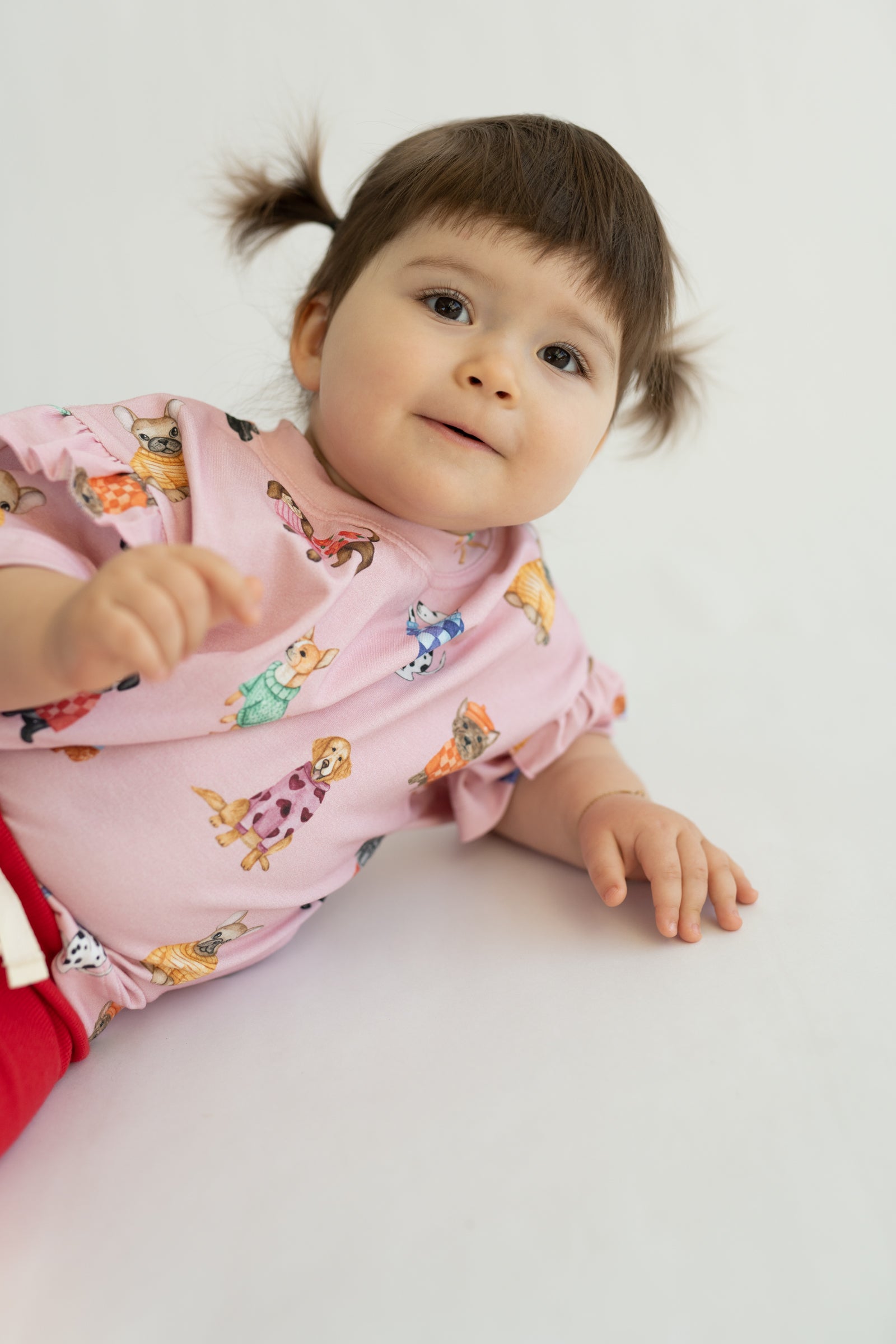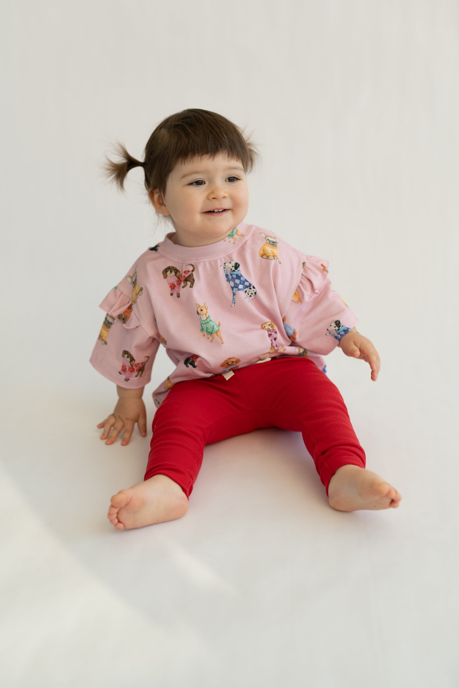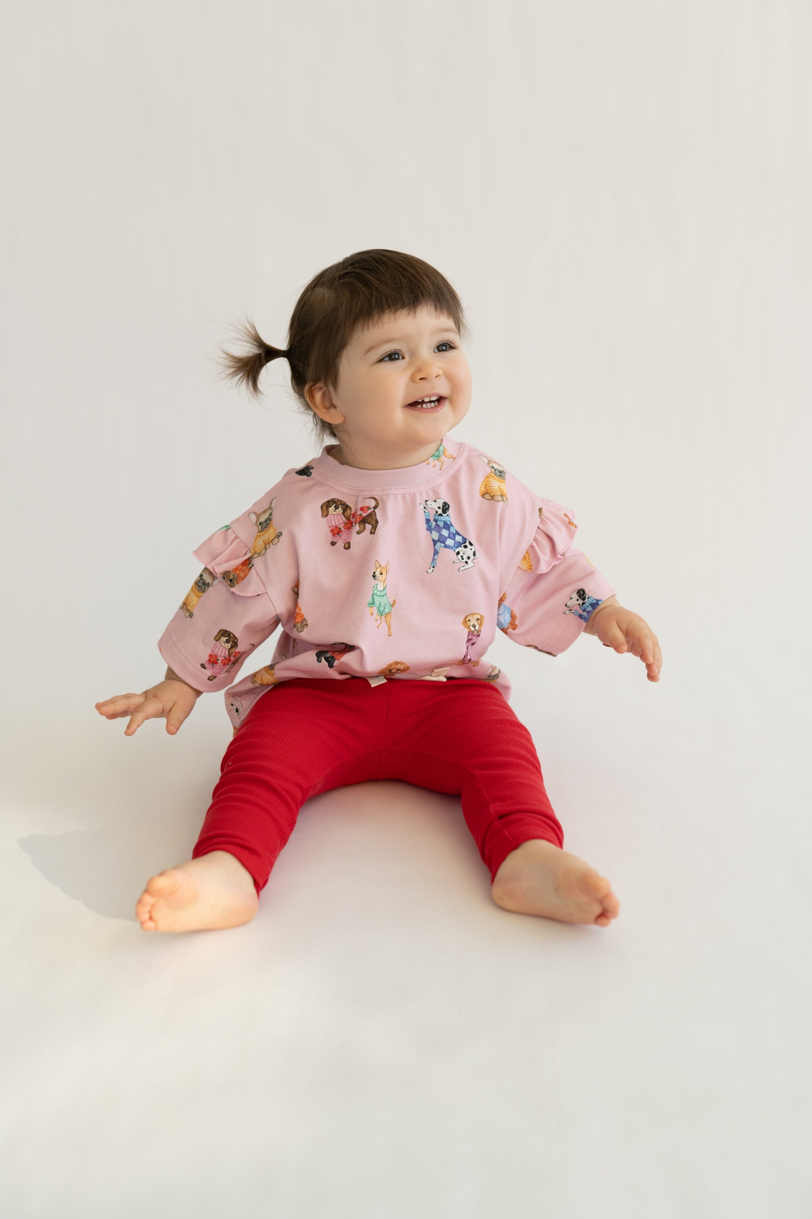 Bluzka dziecięca w kremowym kolorze z delikatnym wzorem piesków. Wykonana z miękkiej, oddychającej dzianiny, zapewnia komfort noszenia przez cały dzień. Neutralna kolorystyka sprawia, że łatwo dopasować ją do innych elementów garderoby. Klasyczny krój nie krępuje ruchów i sprawdzi się zarówno na co dzień, jak i na wyjątkowe okazje.